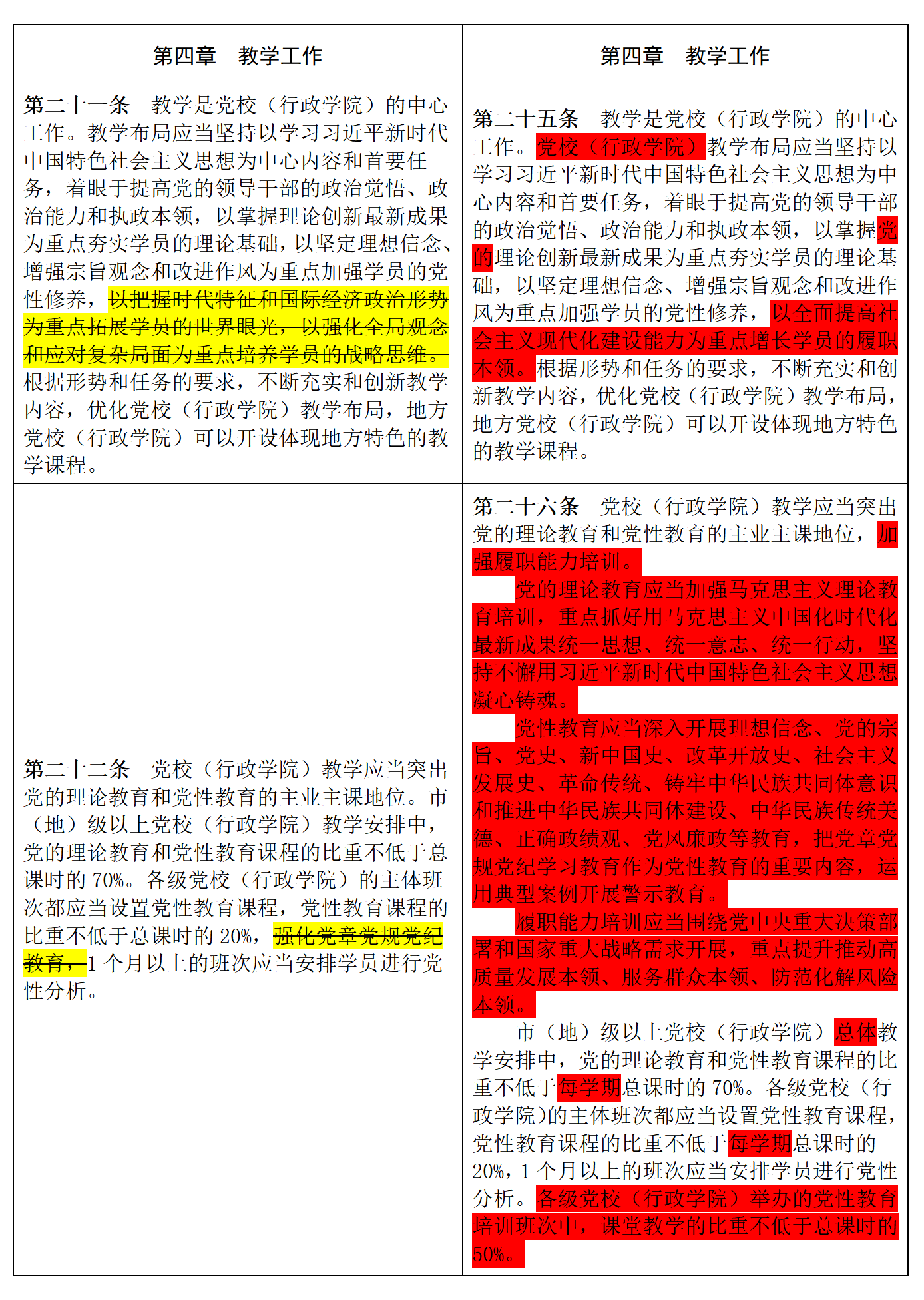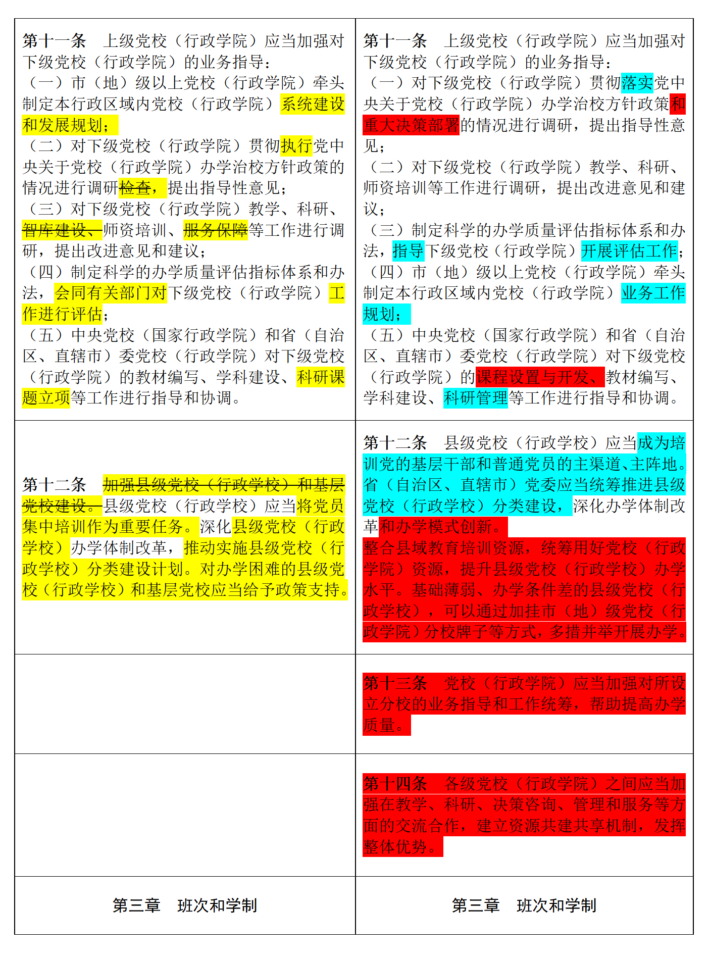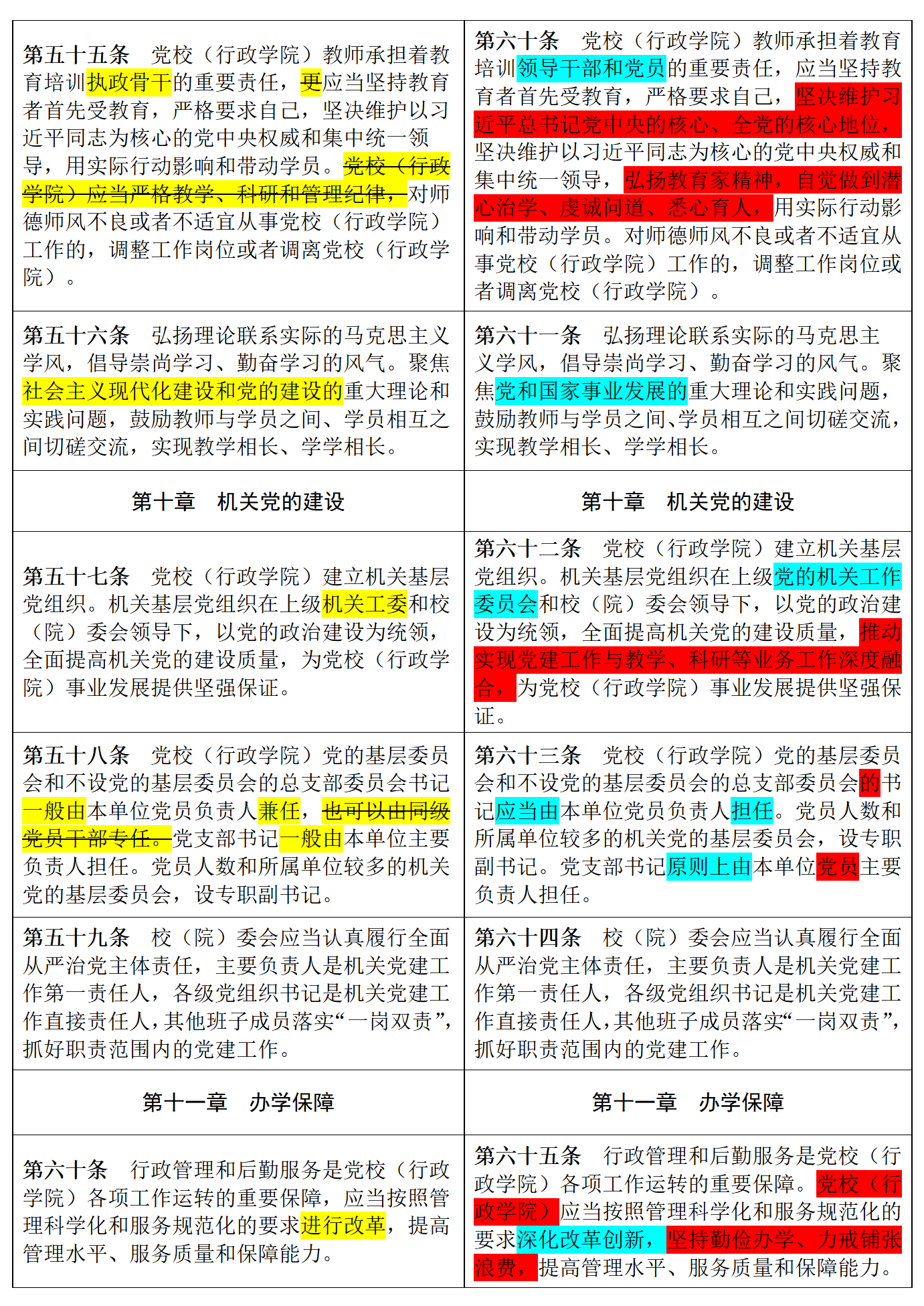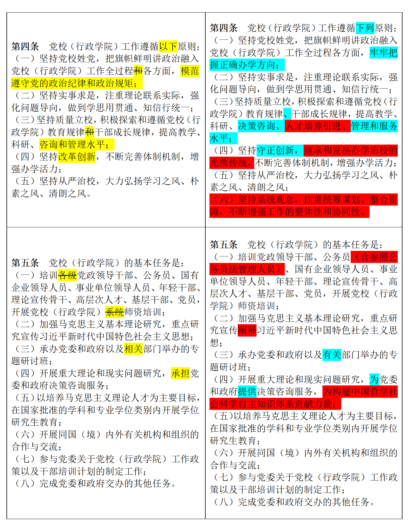 《中國共產黨黨校(行政學院)工作條例》新舊對照