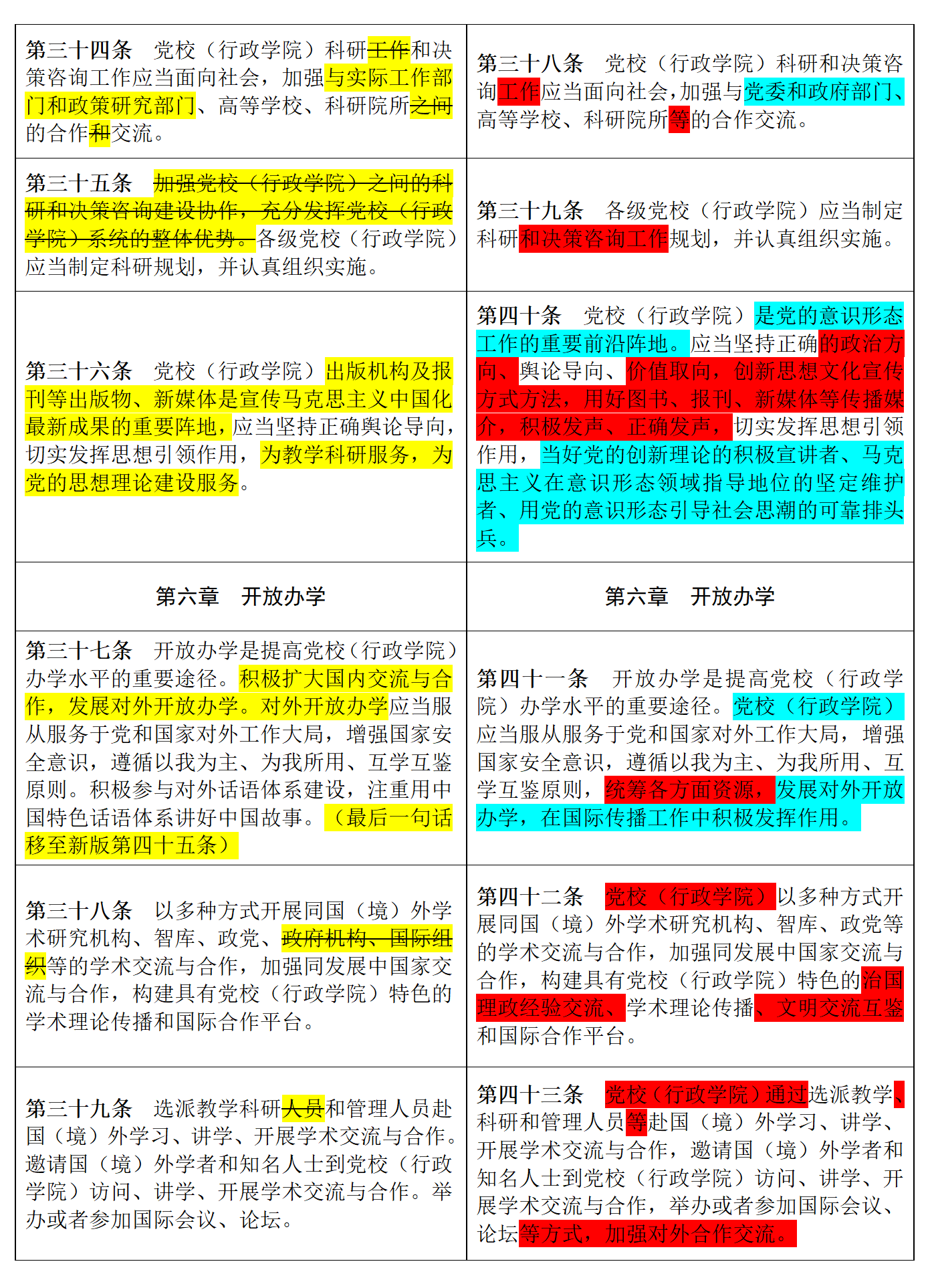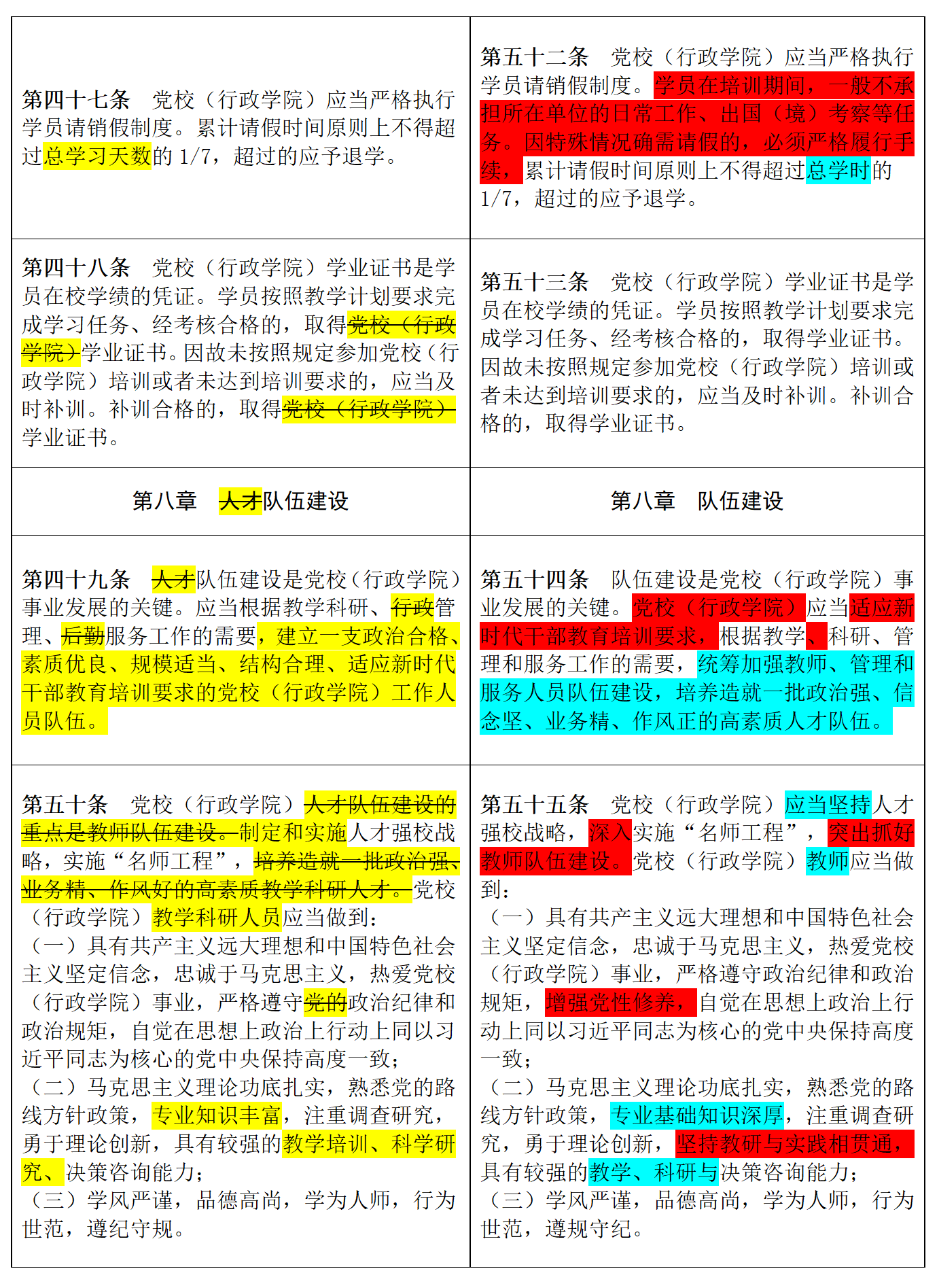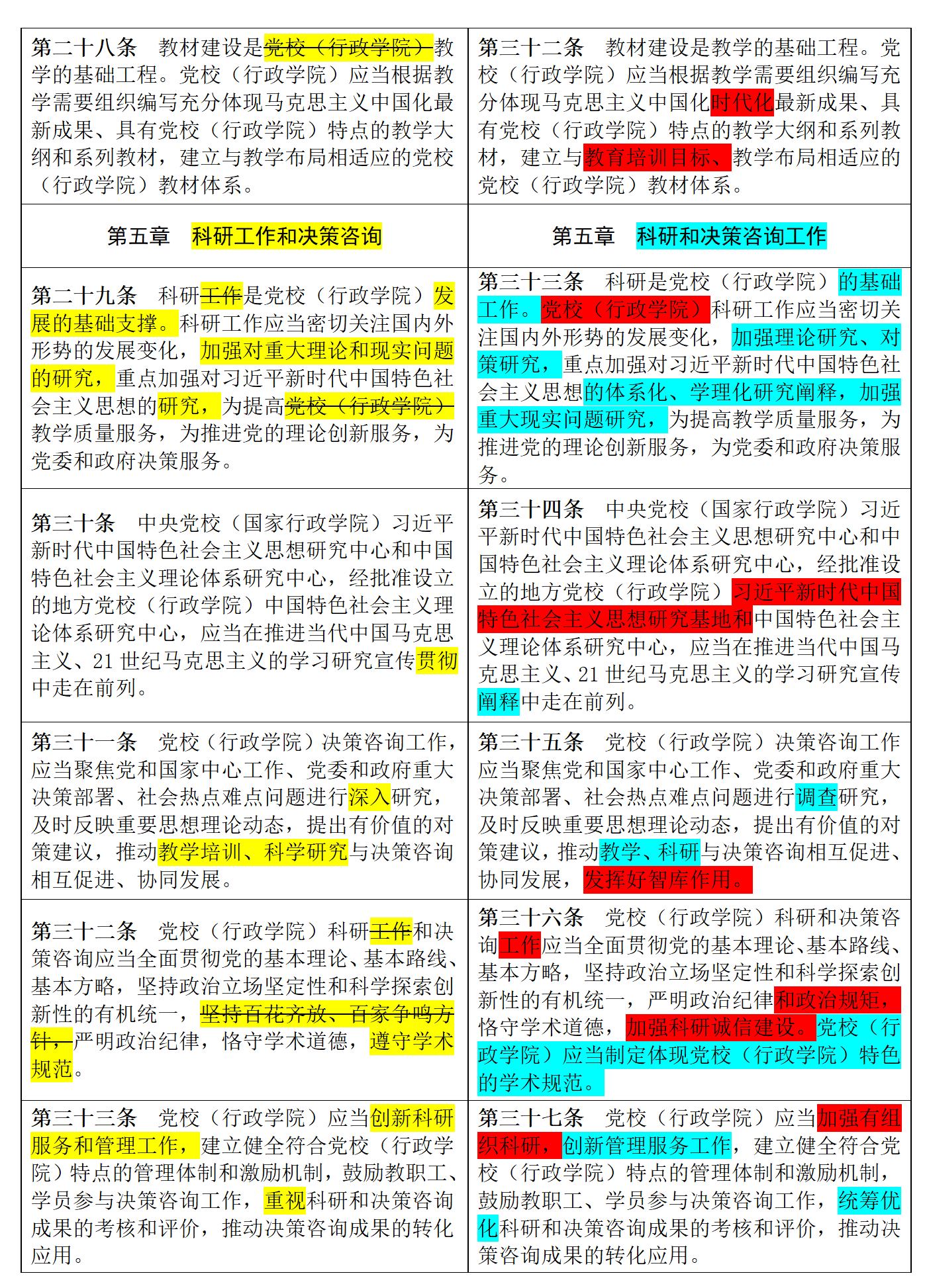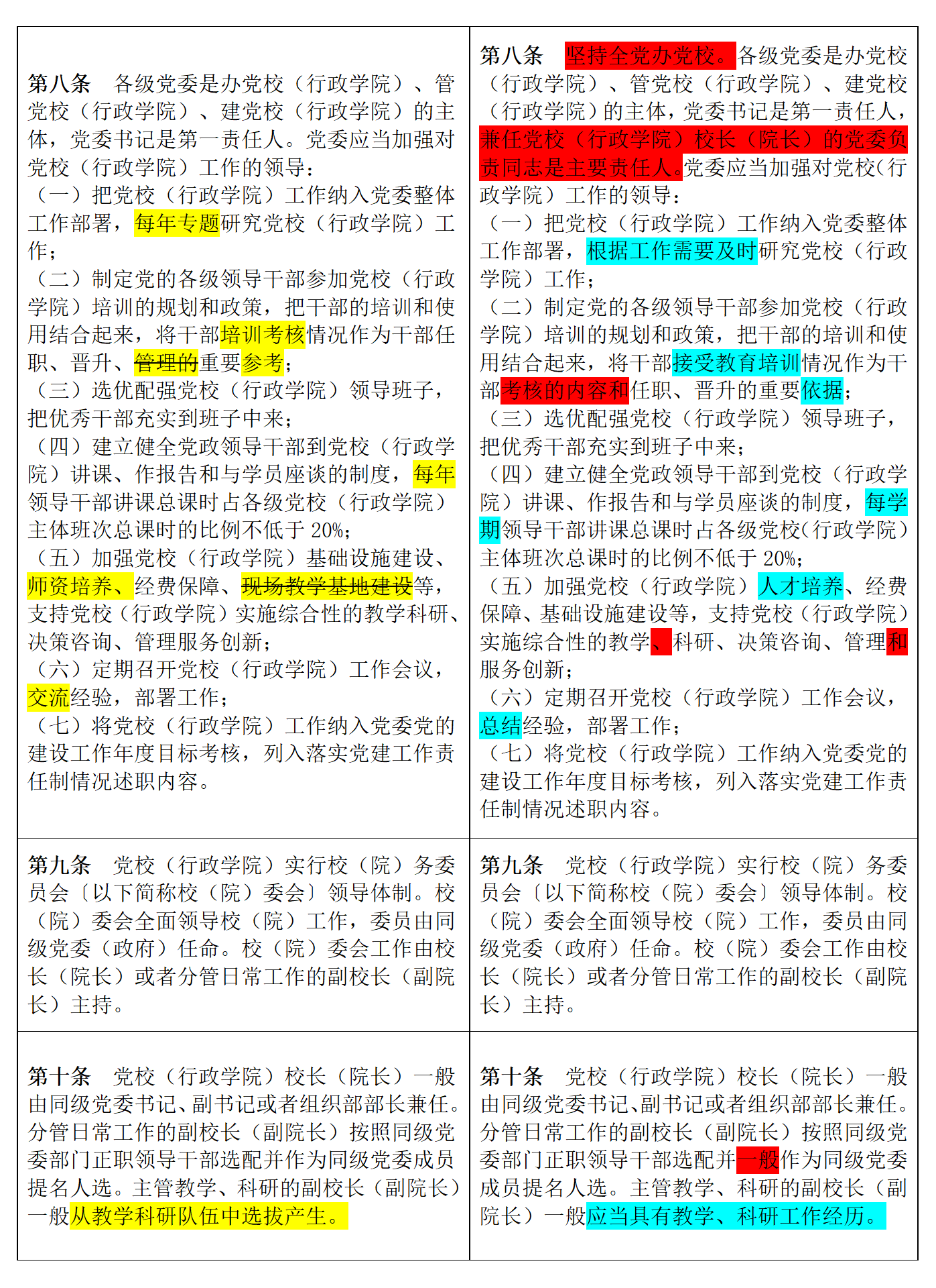 《中國共產黨黨校(行政學院)工作條例》新舊對照