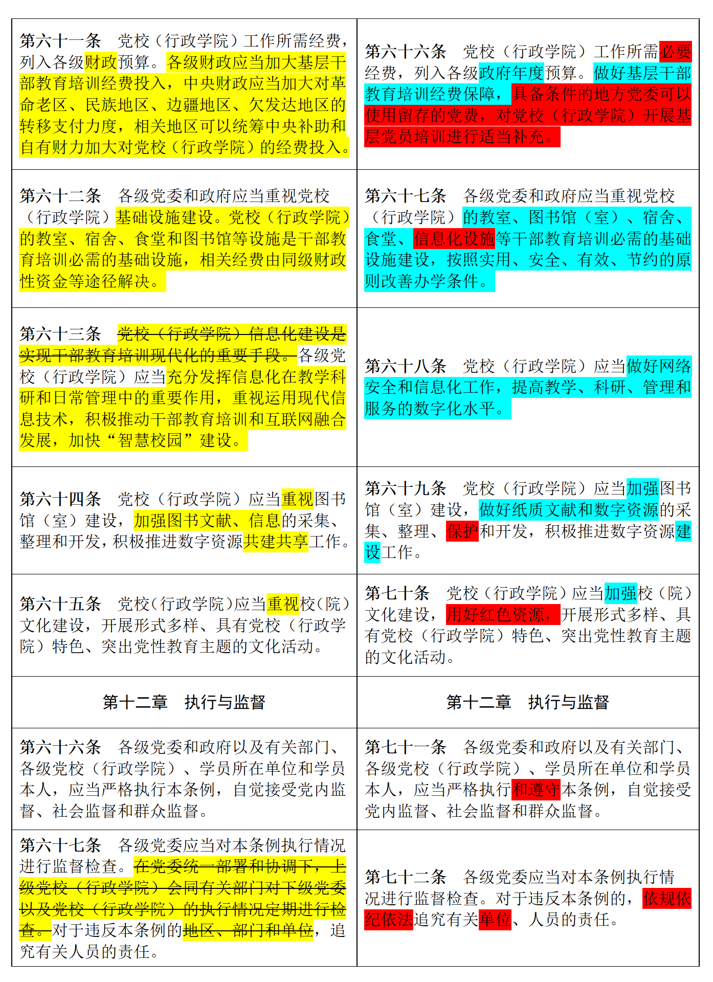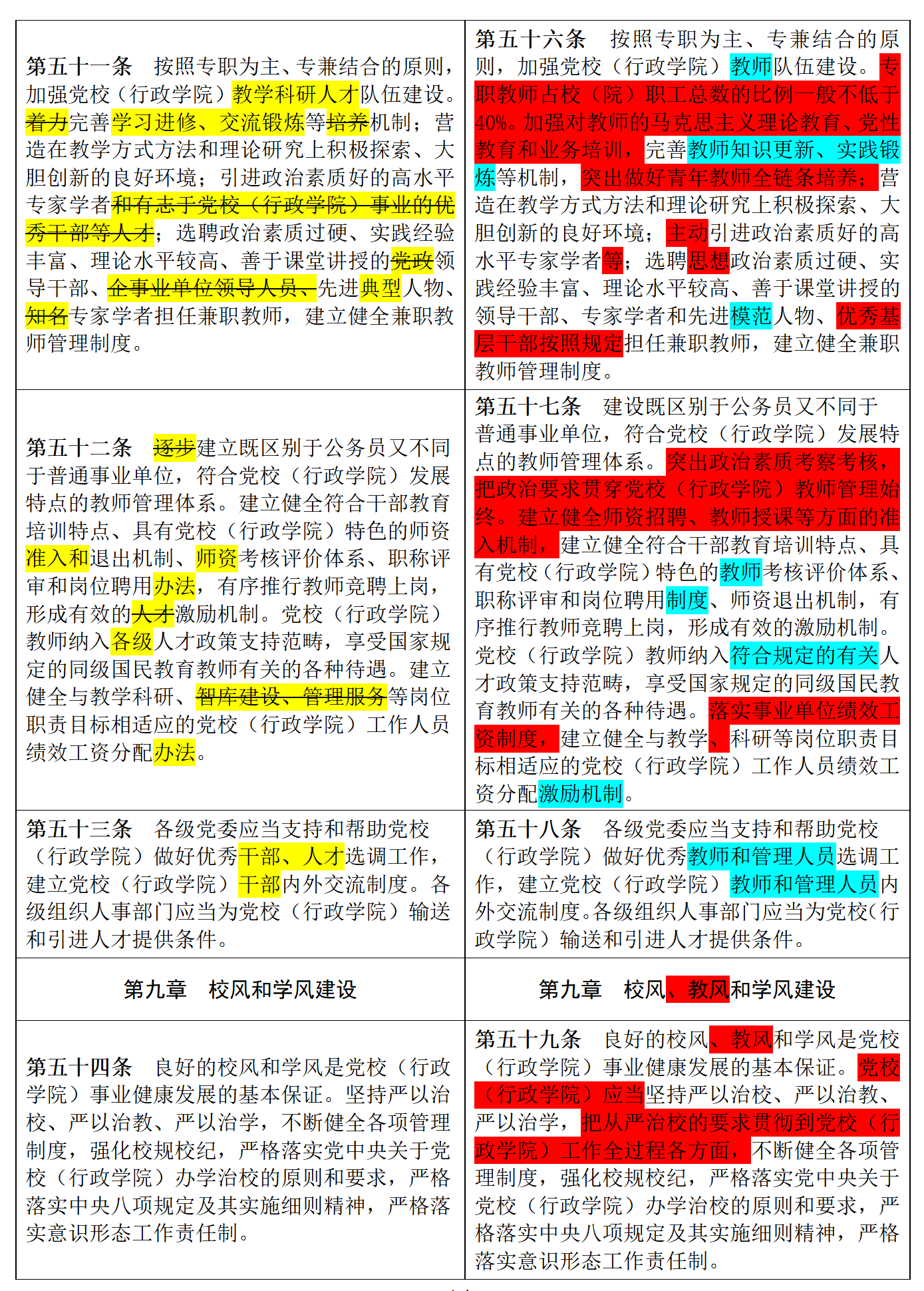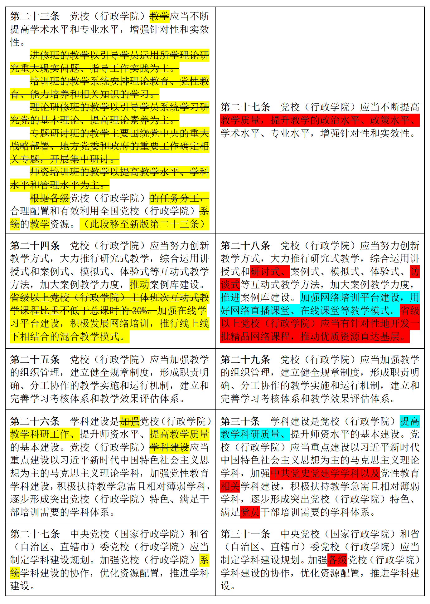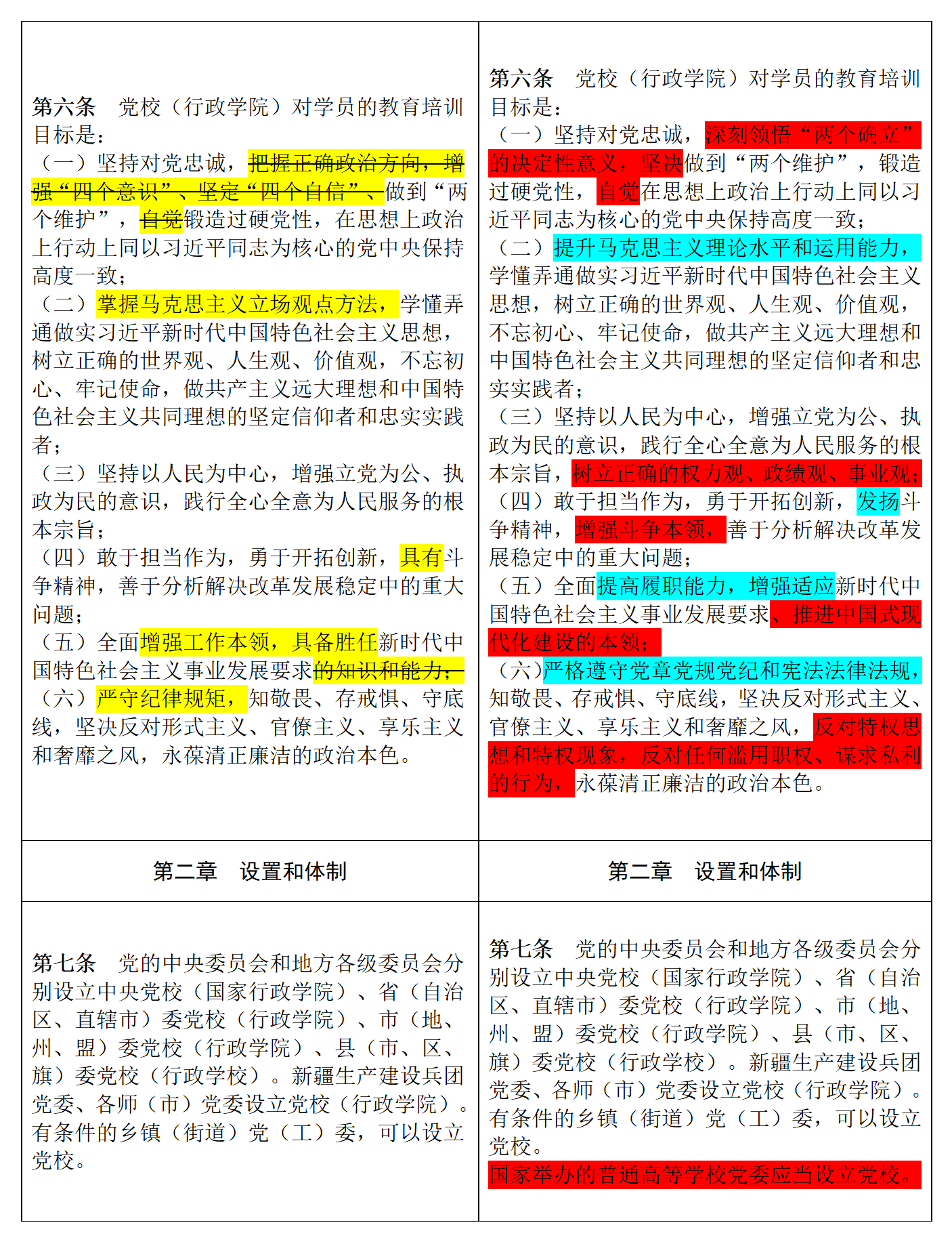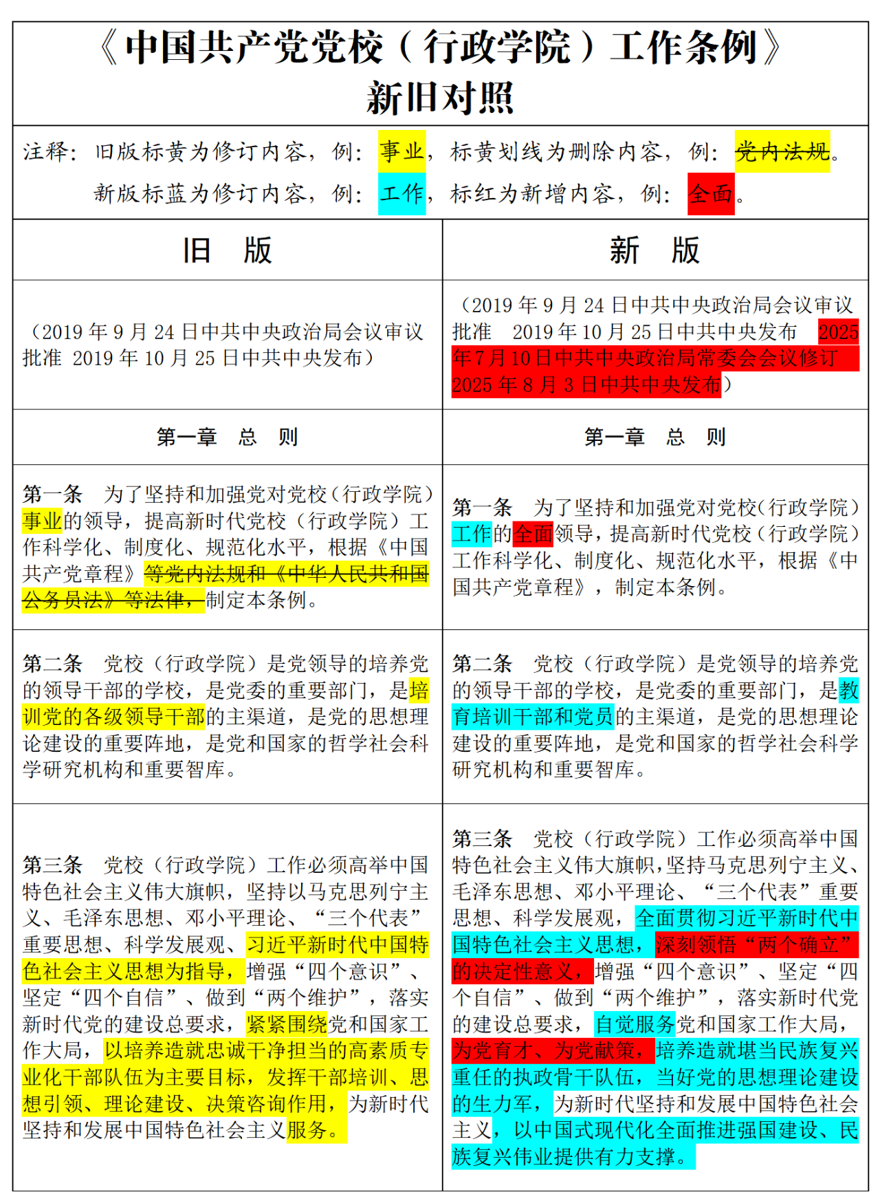 《中國共產黨黨校(行政學院)工作條例》新舊對照