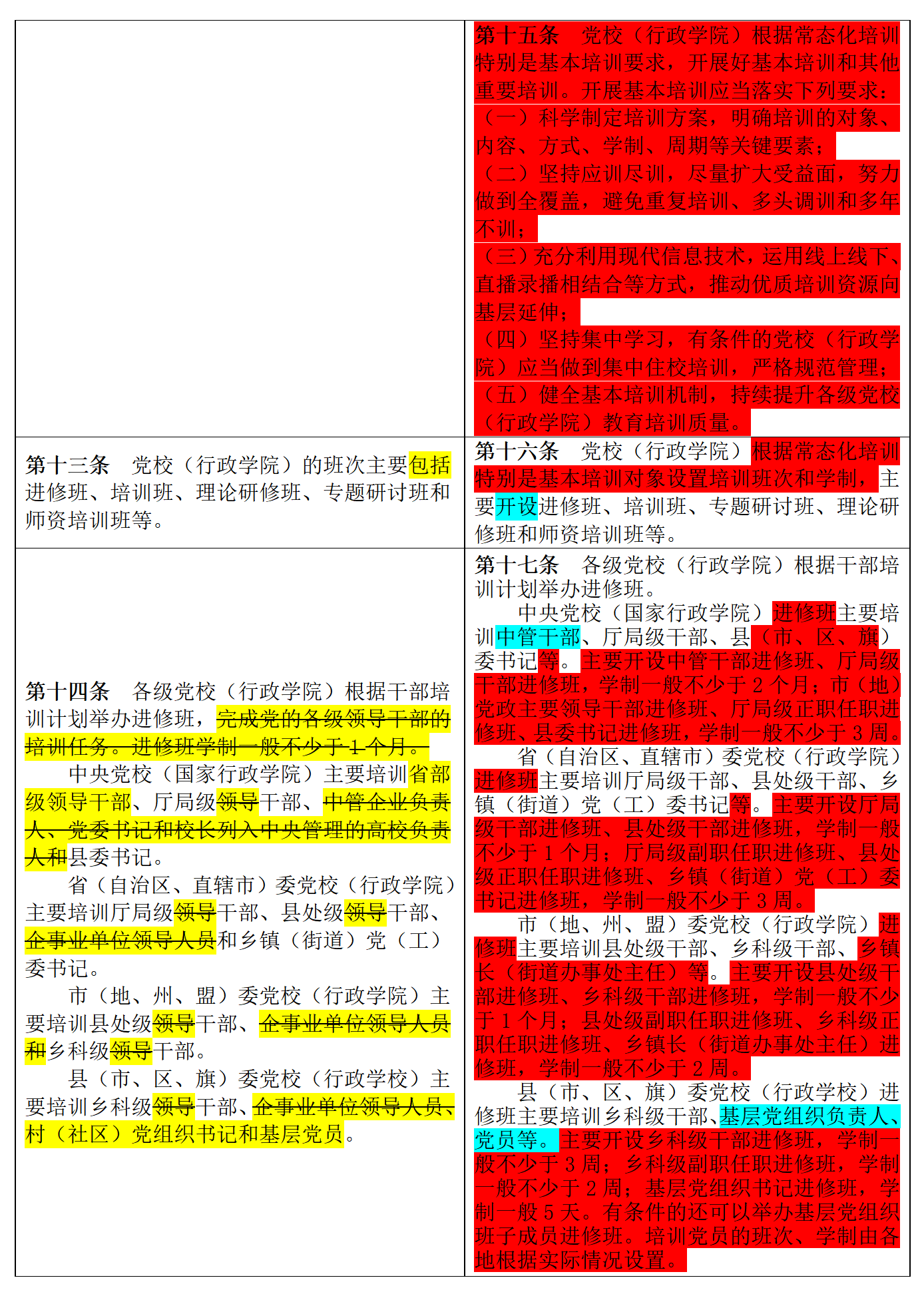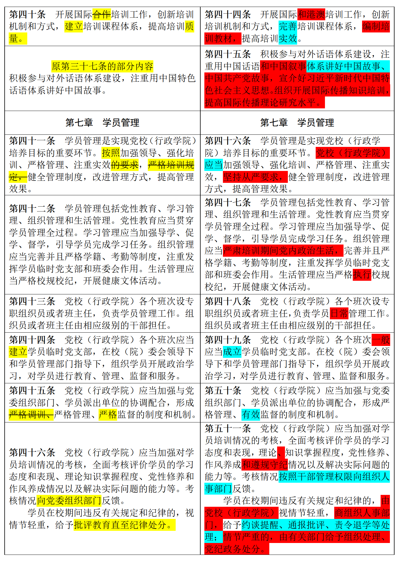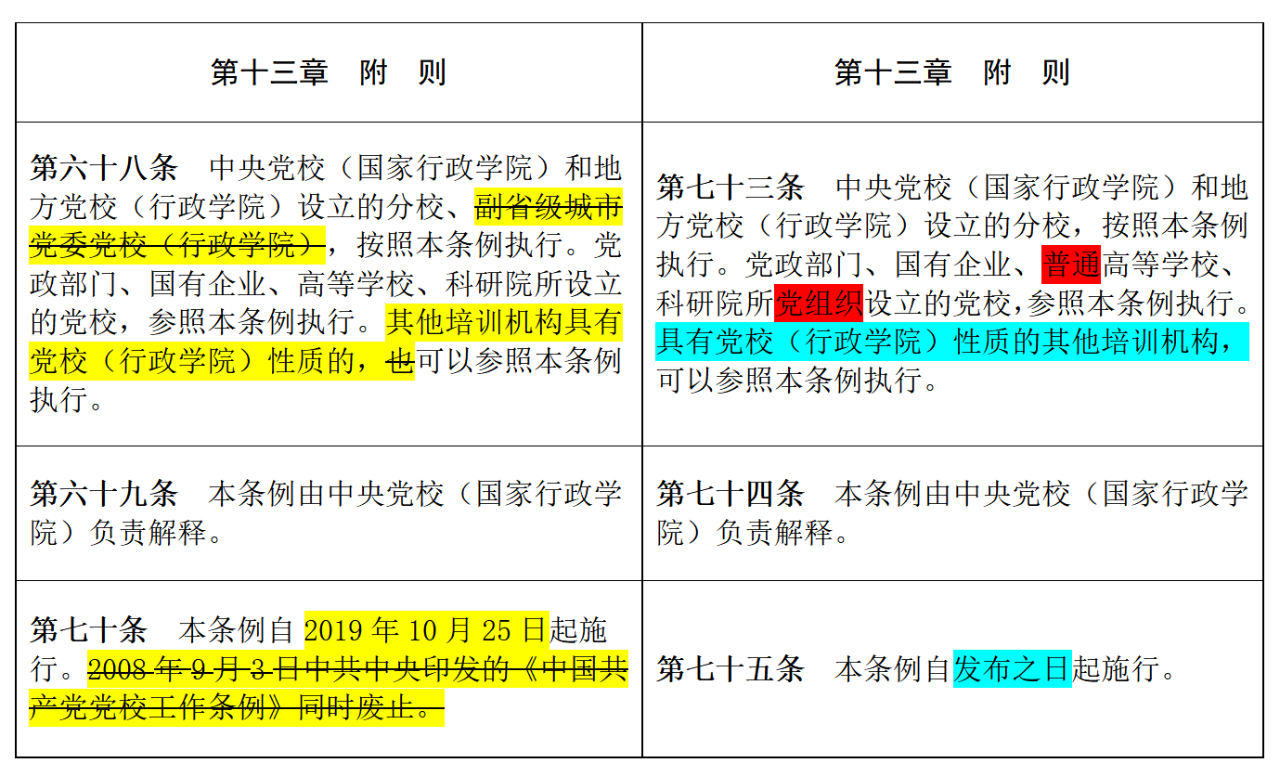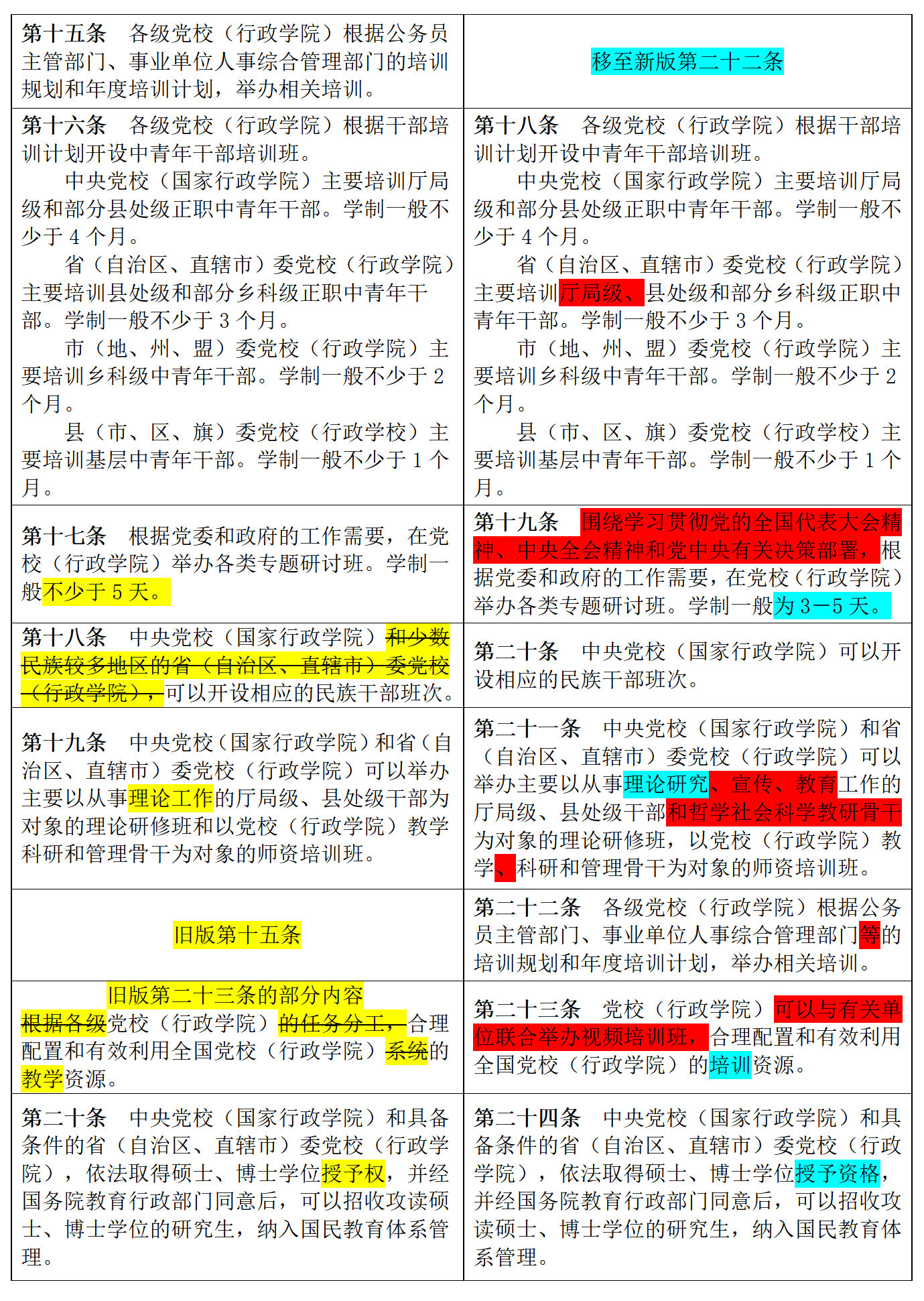 《中國共產黨黨校(行政學院)工作條例》新舊對照