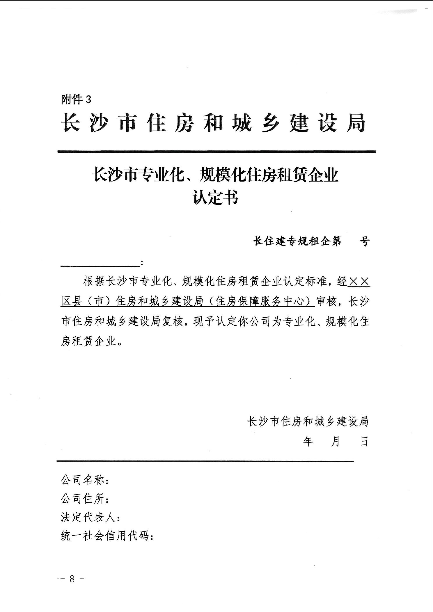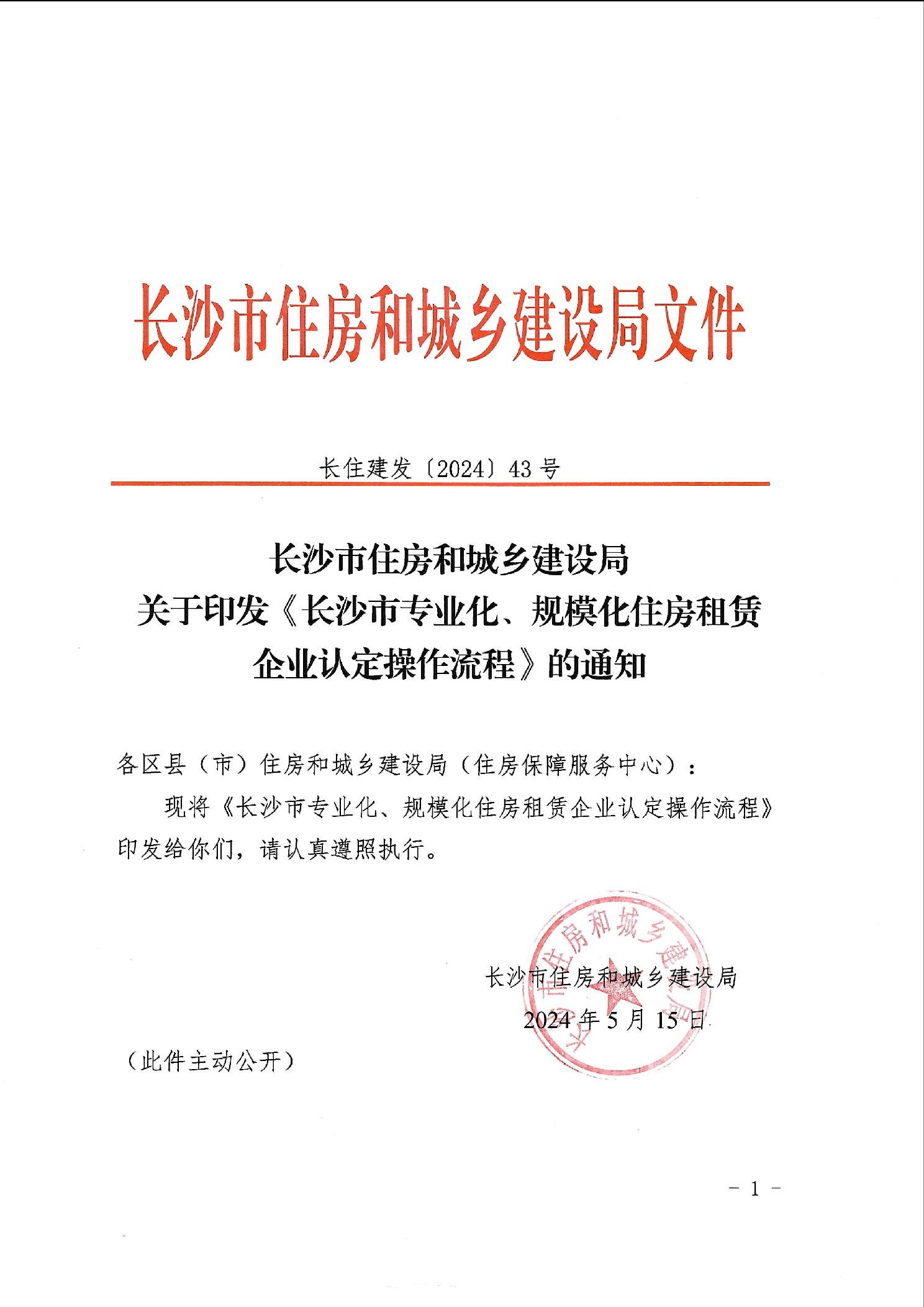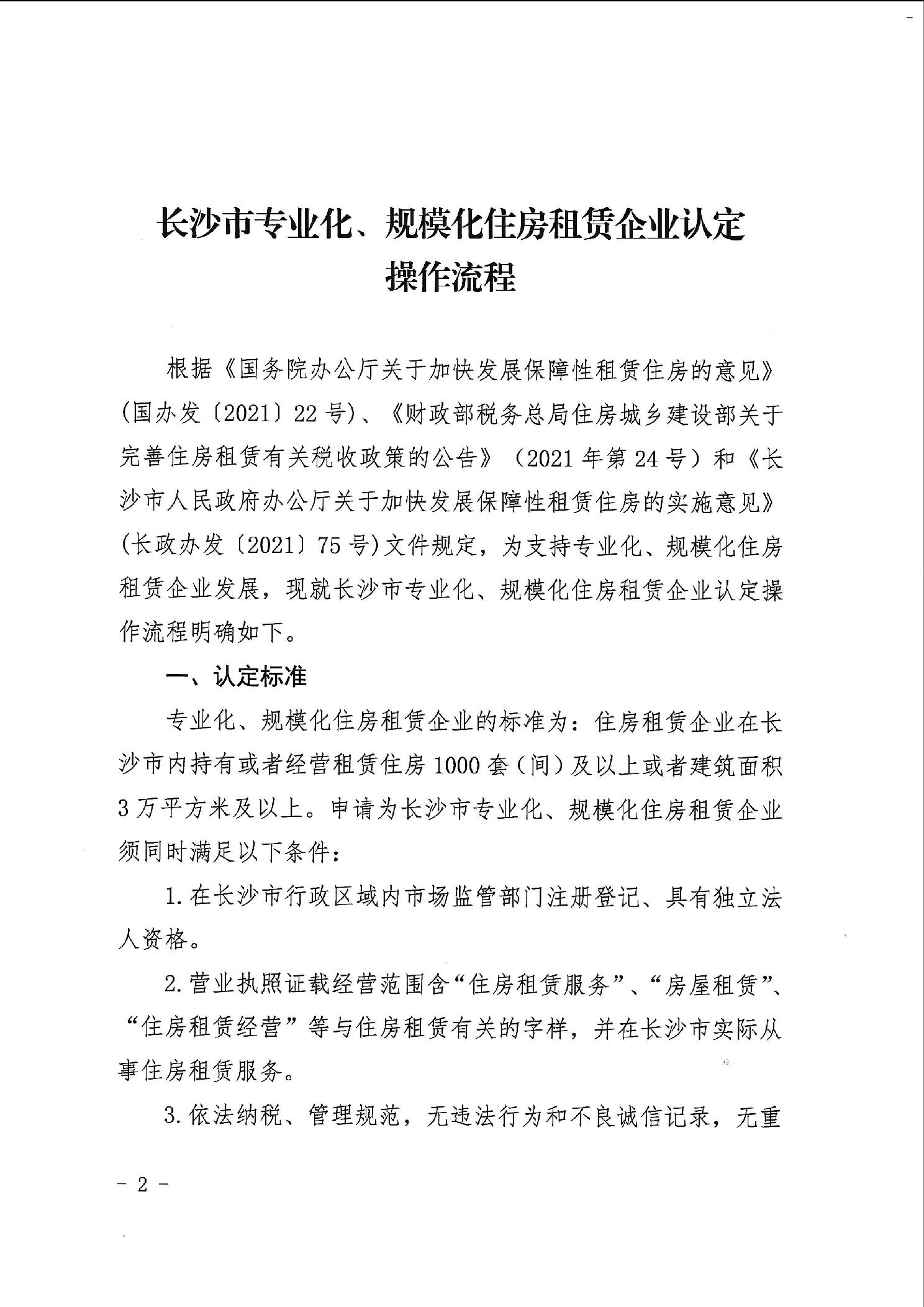 長沙市住房和城鄉建設局關于印發《長沙市專業化、 規模化住房租賃企業認定操作流程》的通知