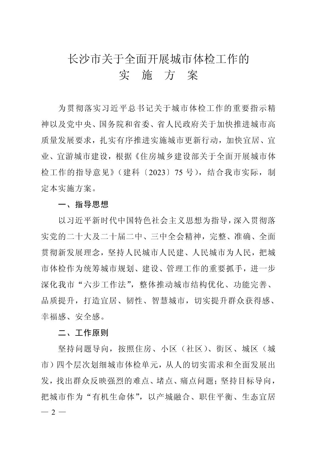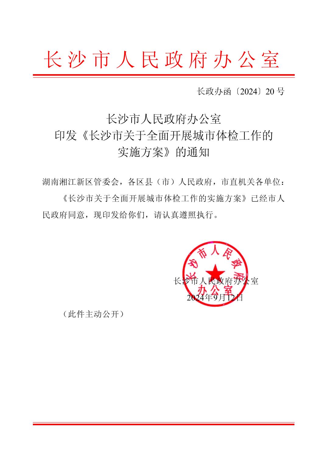 長沙市人民政府辦公室印發(fā)《長沙市關(guān)于全面開展城市體檢工作的實(shí)施方案》的通知