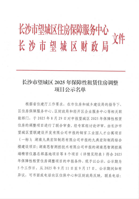 長沙市望城區2025年保障性租賃住房調整項目公示名單