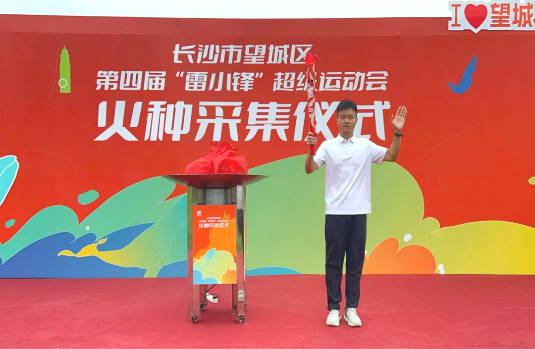 此前,在長沙市望城區第四屆“雷小鋒”超級運動會火種采集儀式現場,望城支教團組織委員、07842號“雷小鋒”導師文建成成功點燃火炬,為此次跨域傳遞拉開序幕。