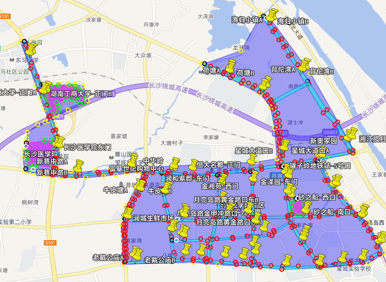 7.運營區域:運營期間,西至雷鋒大道湖南工商大學北校區及長沙醫學院、永通大道、東至銀杉路及瀟湘大道、北至普瑞大道及市四醫院、海歸小鎮、大澤湖、南至銀星路,區域面積約為10.62平方公里,按客流導向、出行需求適時擴大電子圍欄至經開園區、大學城及望城主城區域。