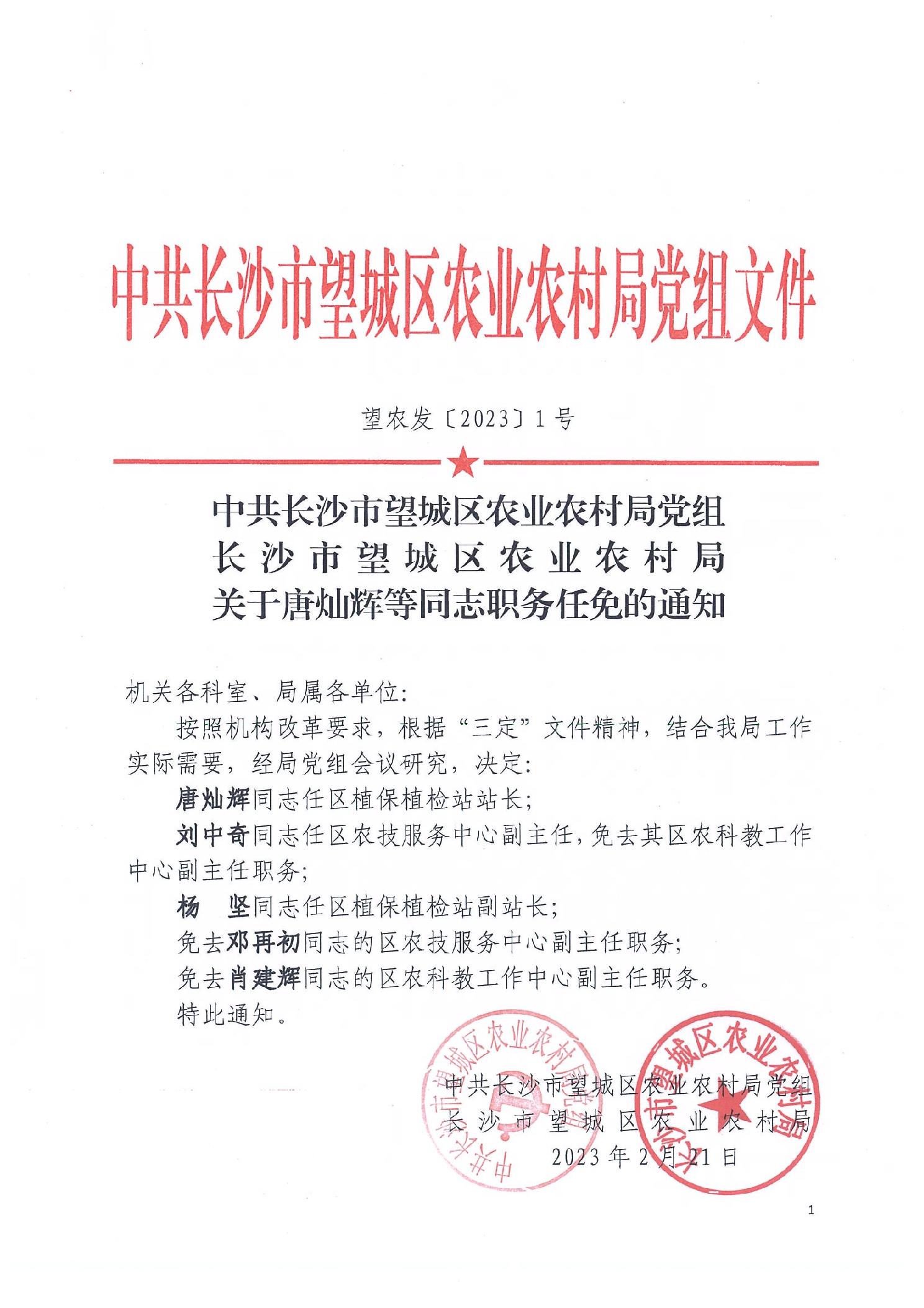 關于唐燦輝等同志職務任免的通知