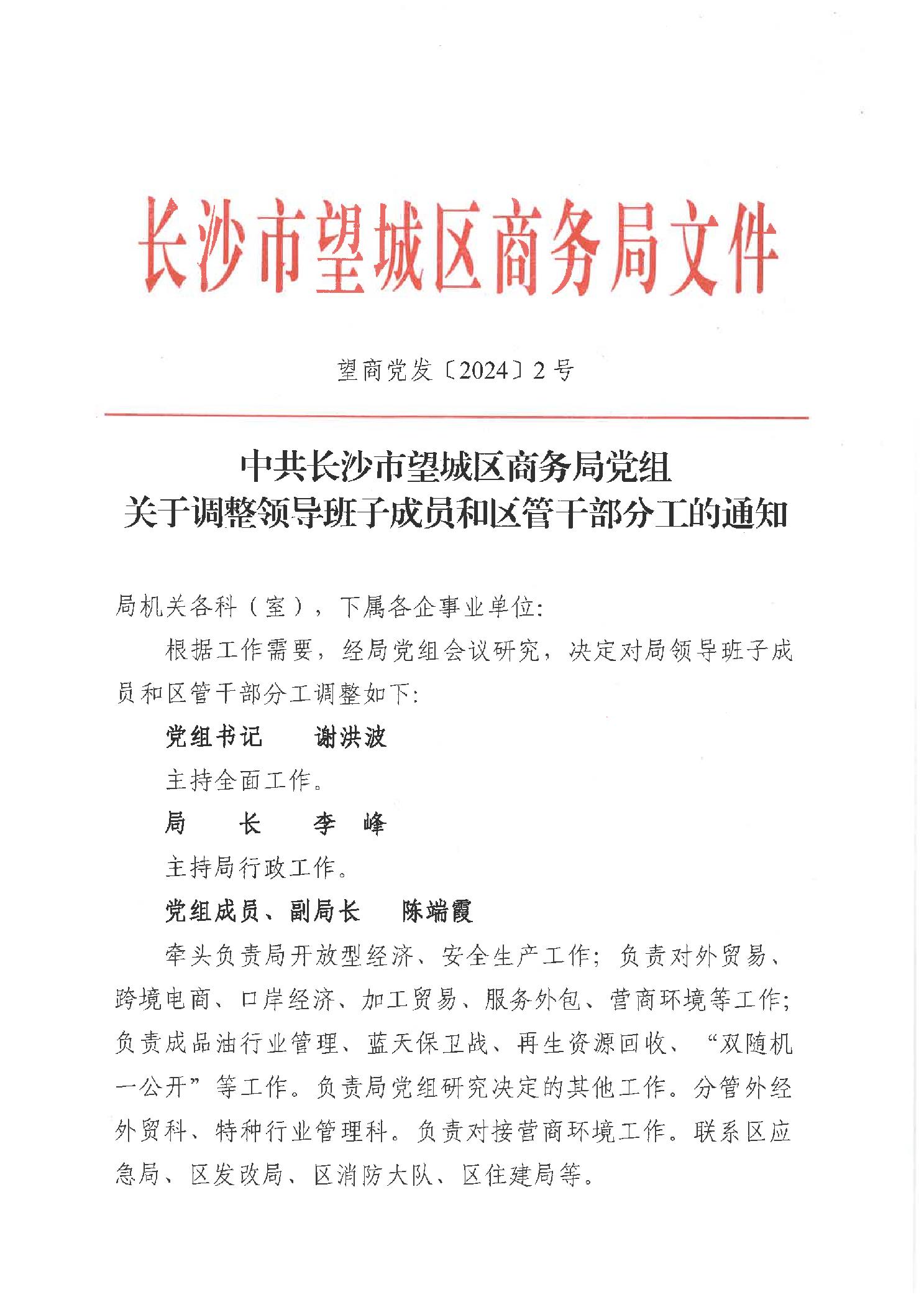 望商黨發(fā)〔2024〕2 號(hào)關(guān)于調(diào)整局領(lǐng)導(dǎo)班子成員分工的通知