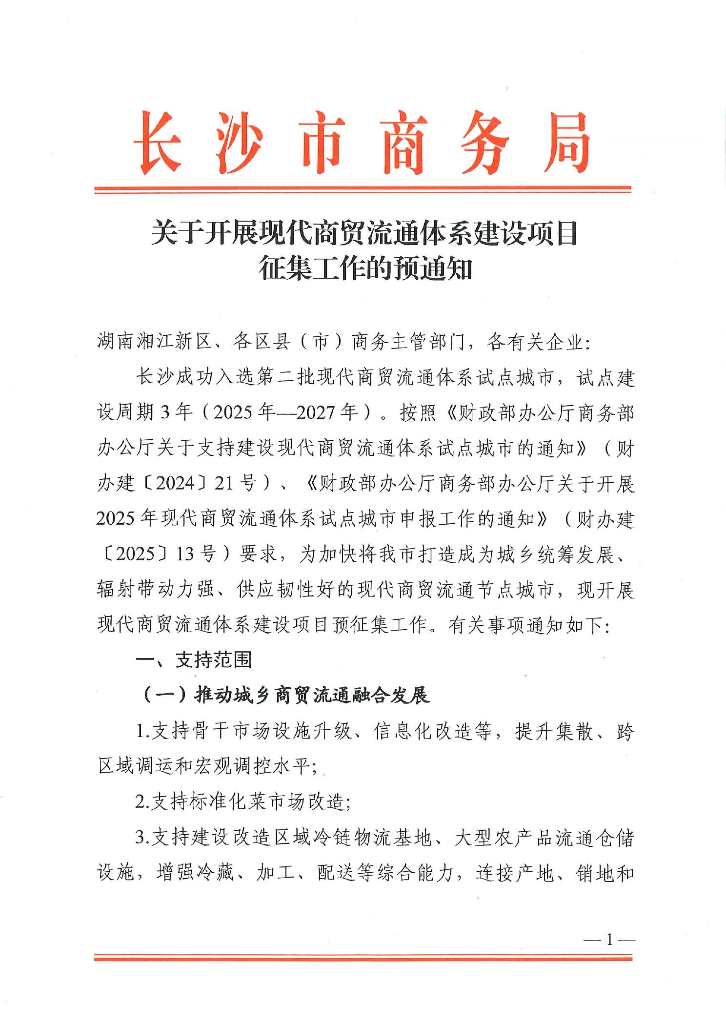 關(guān)于開展現(xiàn)代商貿(mào)流通體系建設(shè)項征集工作的預(yù)通知