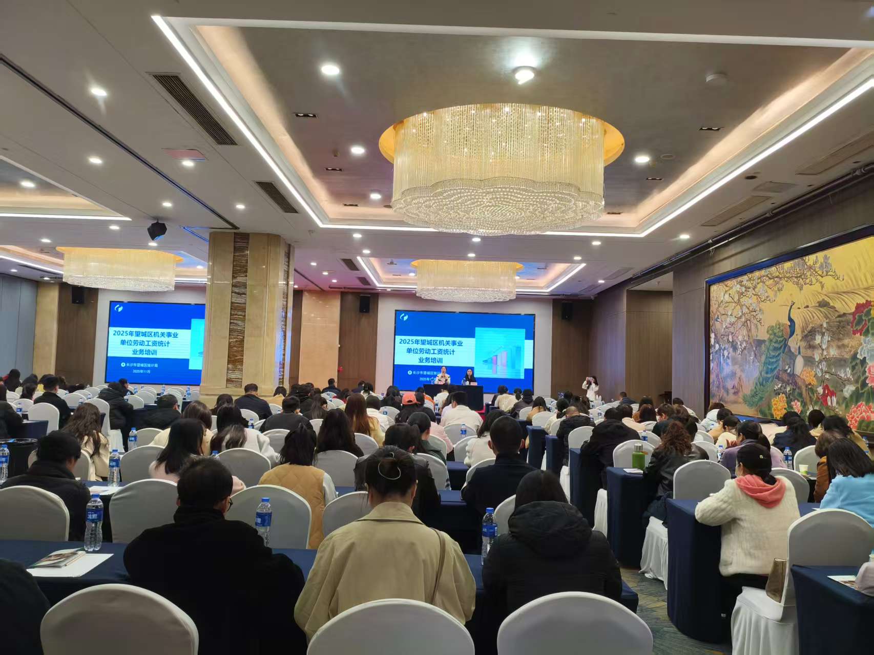 2025年11月28日,區統計局組織召開機關事業單位勞動工資統計業務培訓會,全區機關事業單位勞資報表統計員200余人參與會議。