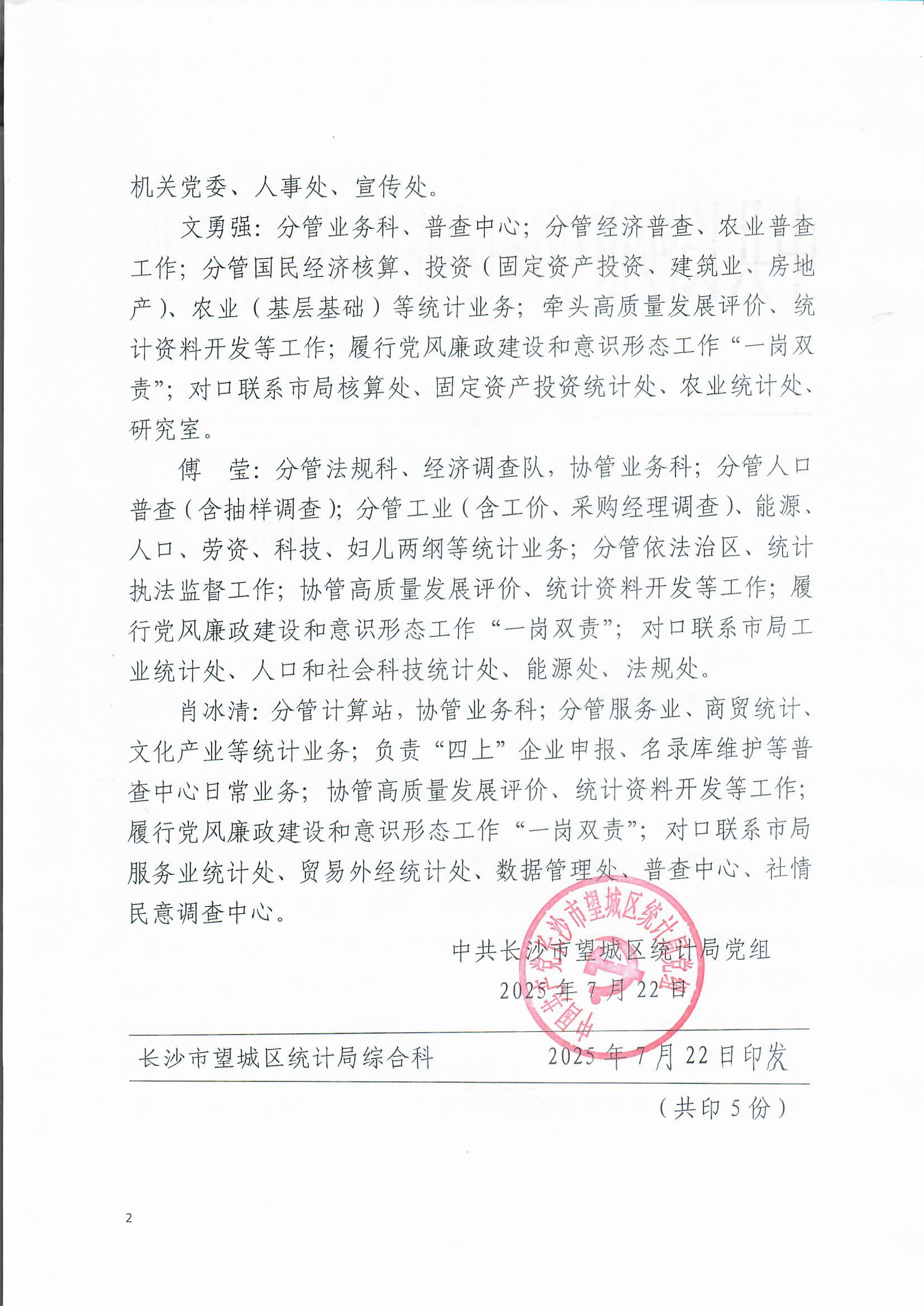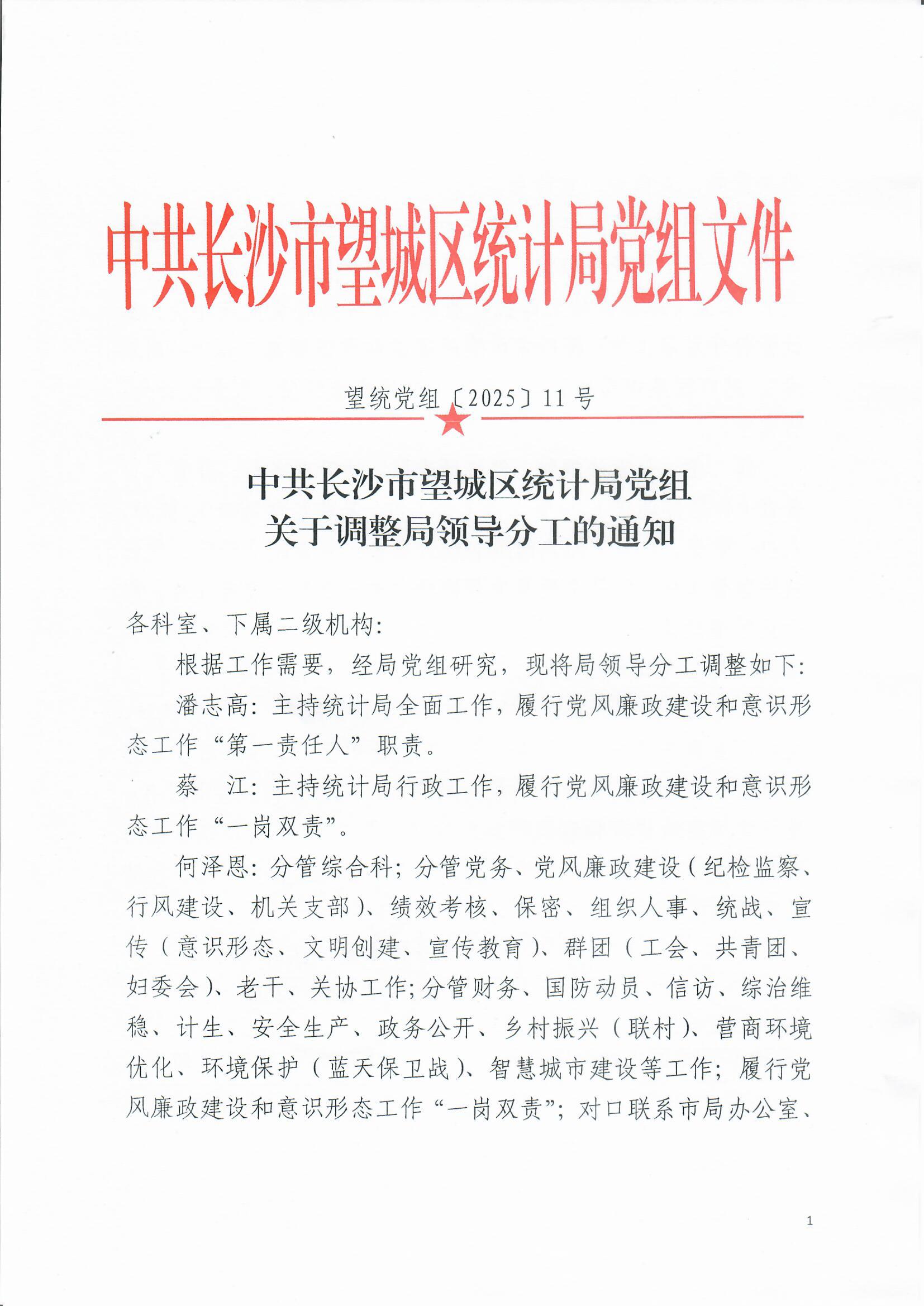中共長沙市望城區統計局黨組關于調整局領導分工的通知