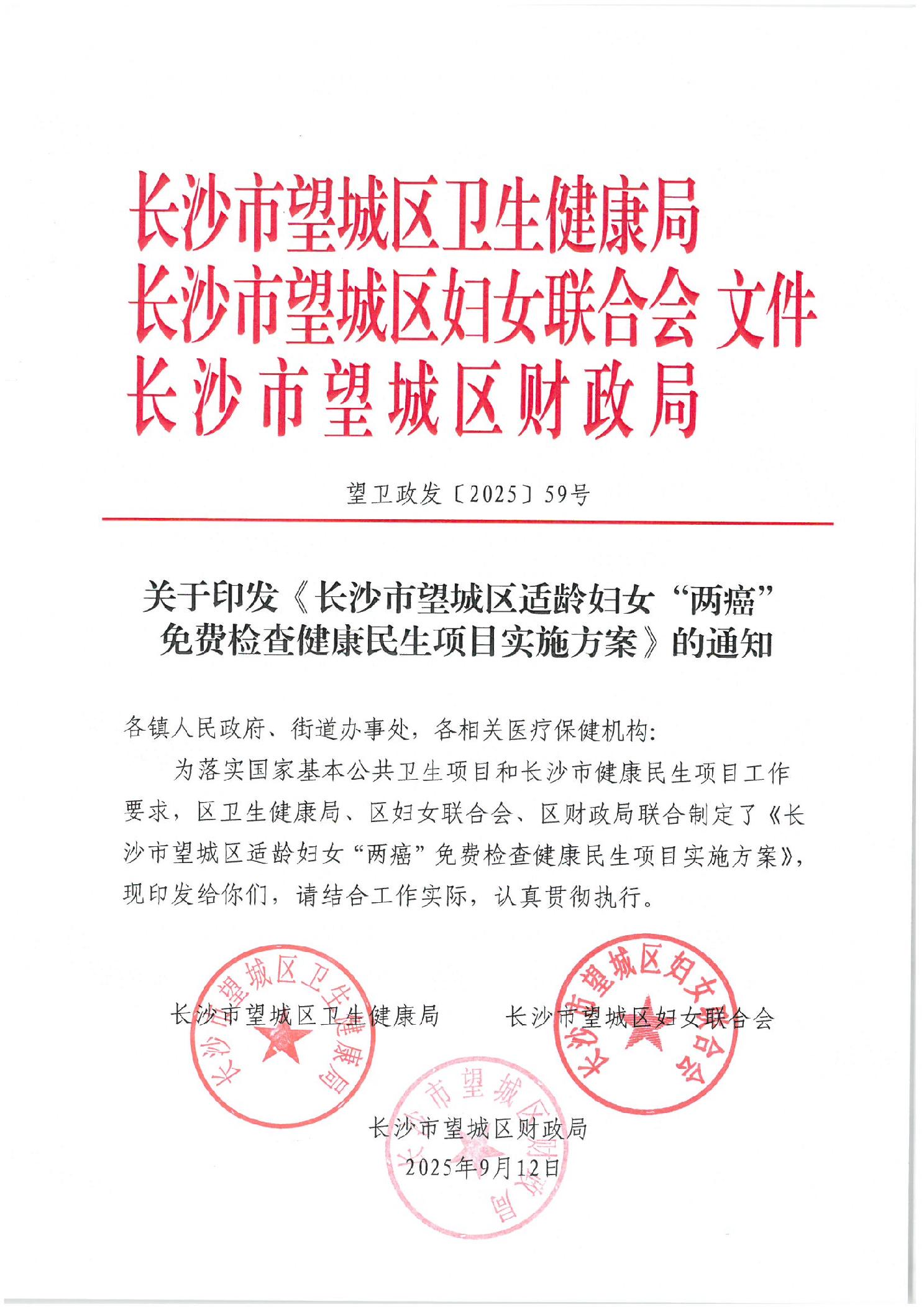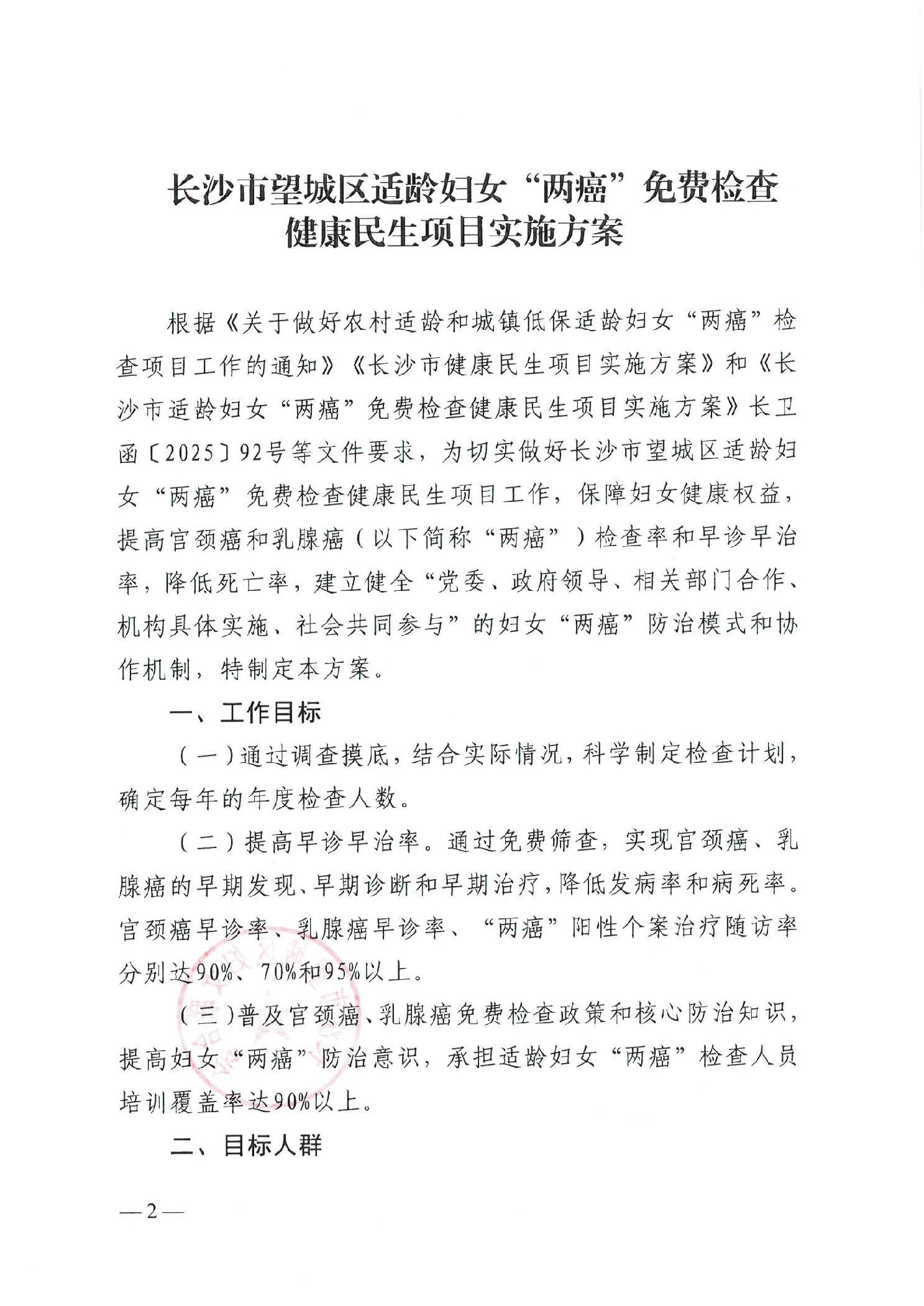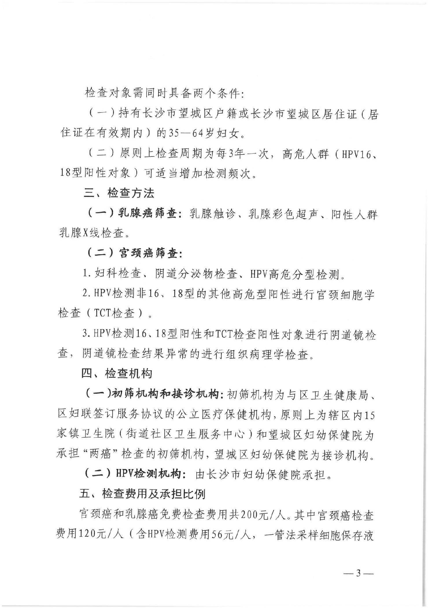 關于印發《長沙市望城區適齡婦女“兩癌”免費檢查健康民生項目實施方案》的通知