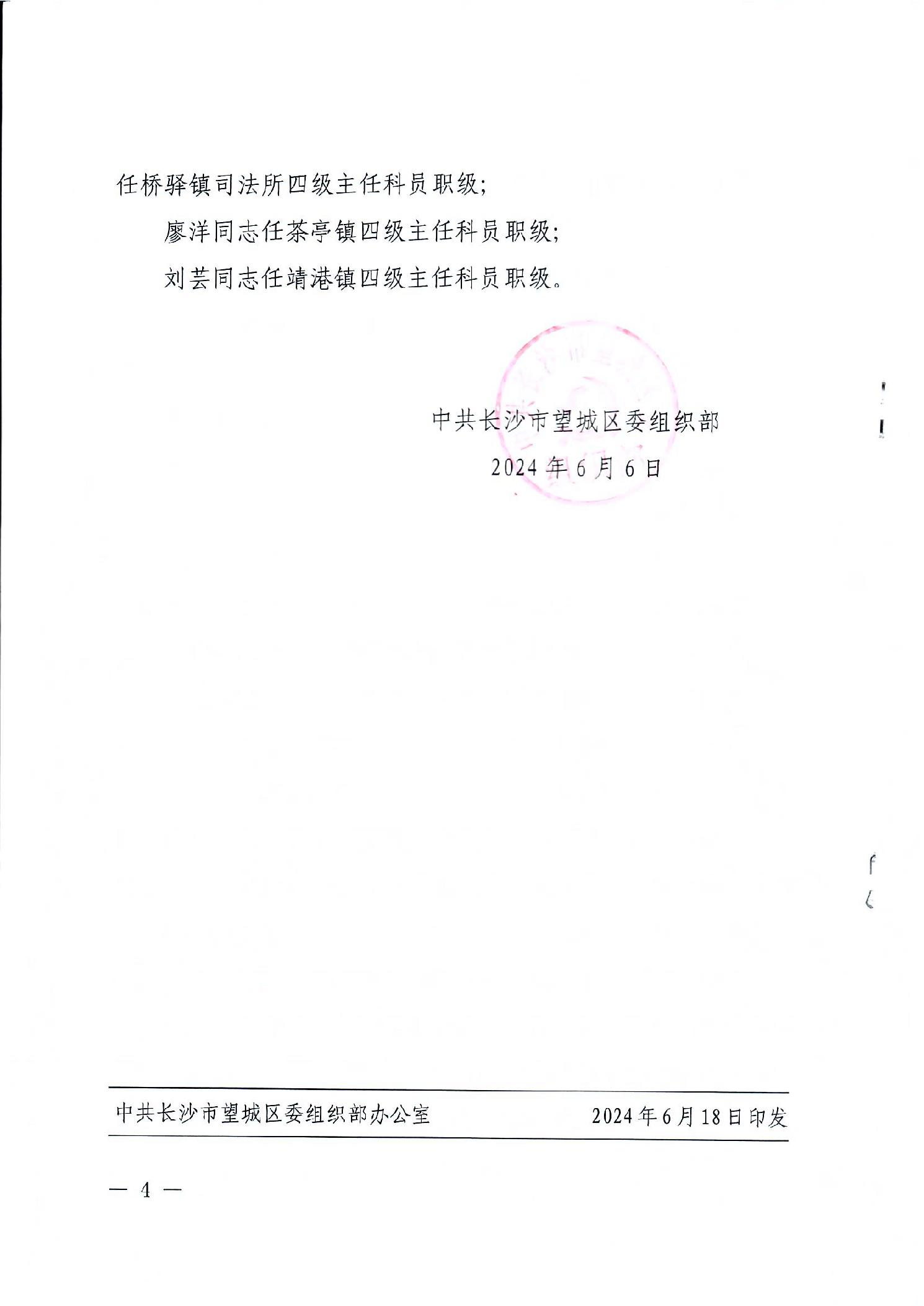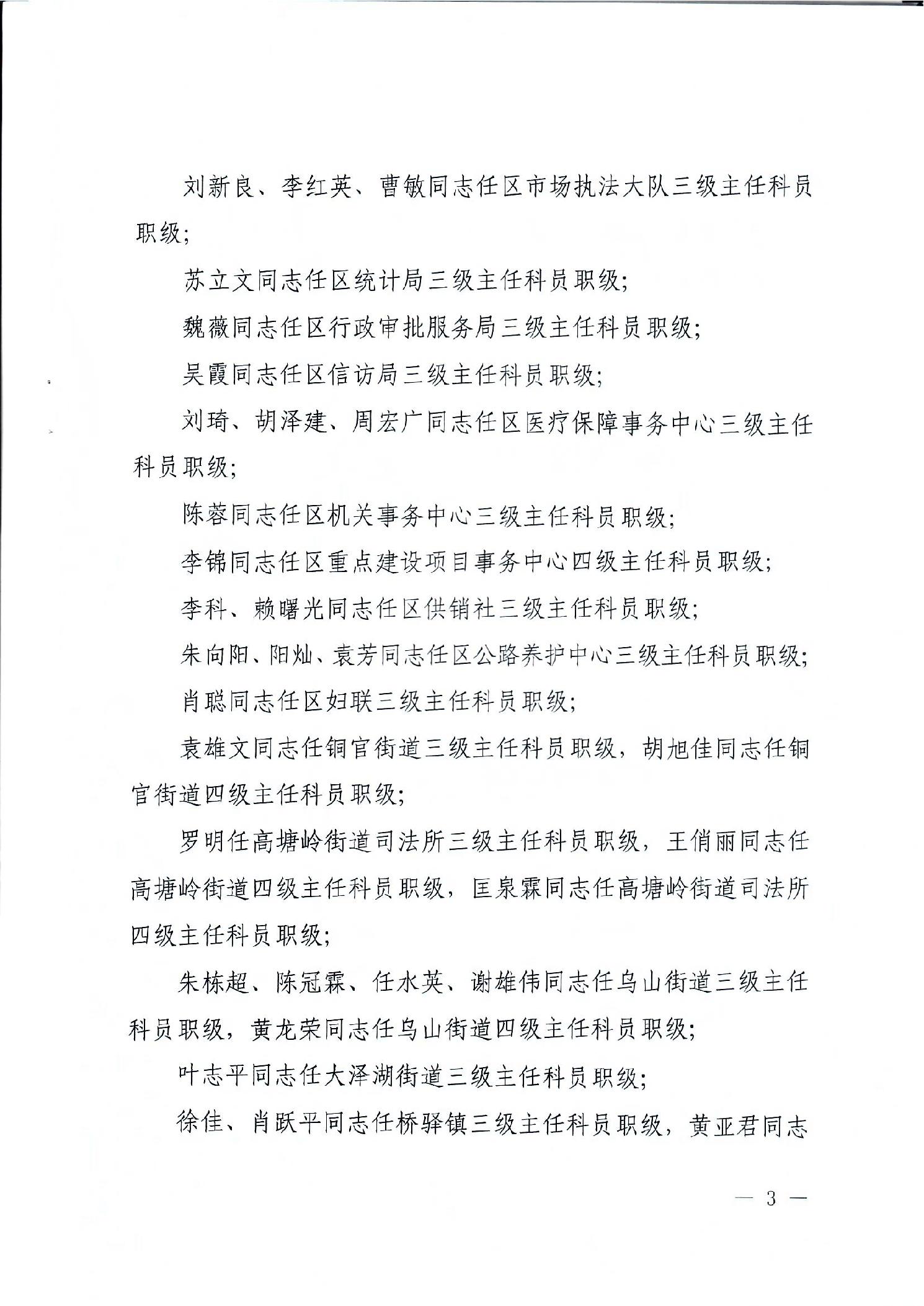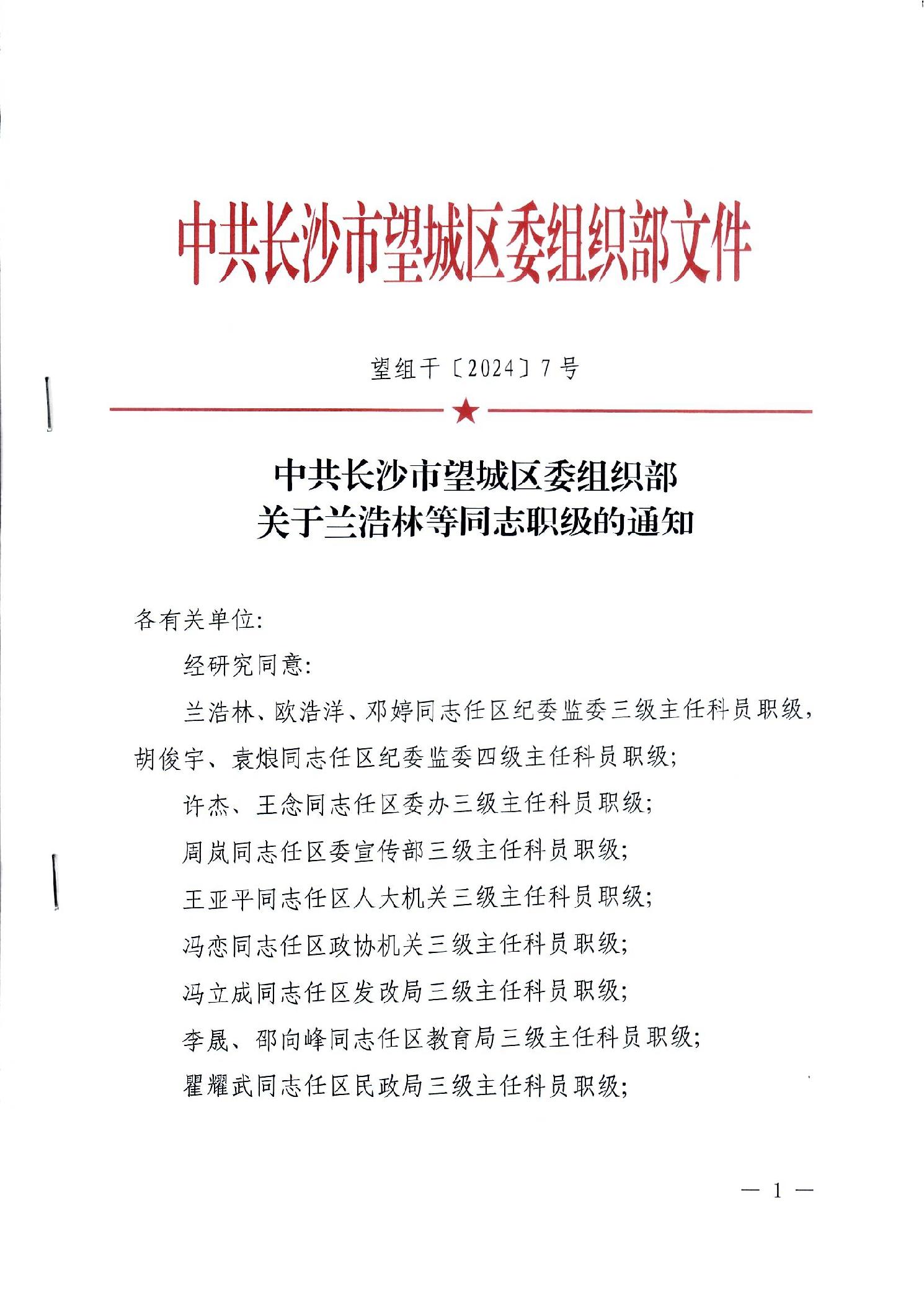 中共長沙市望城區(qū)委組織部關于蘭浩林等同志職級的通知