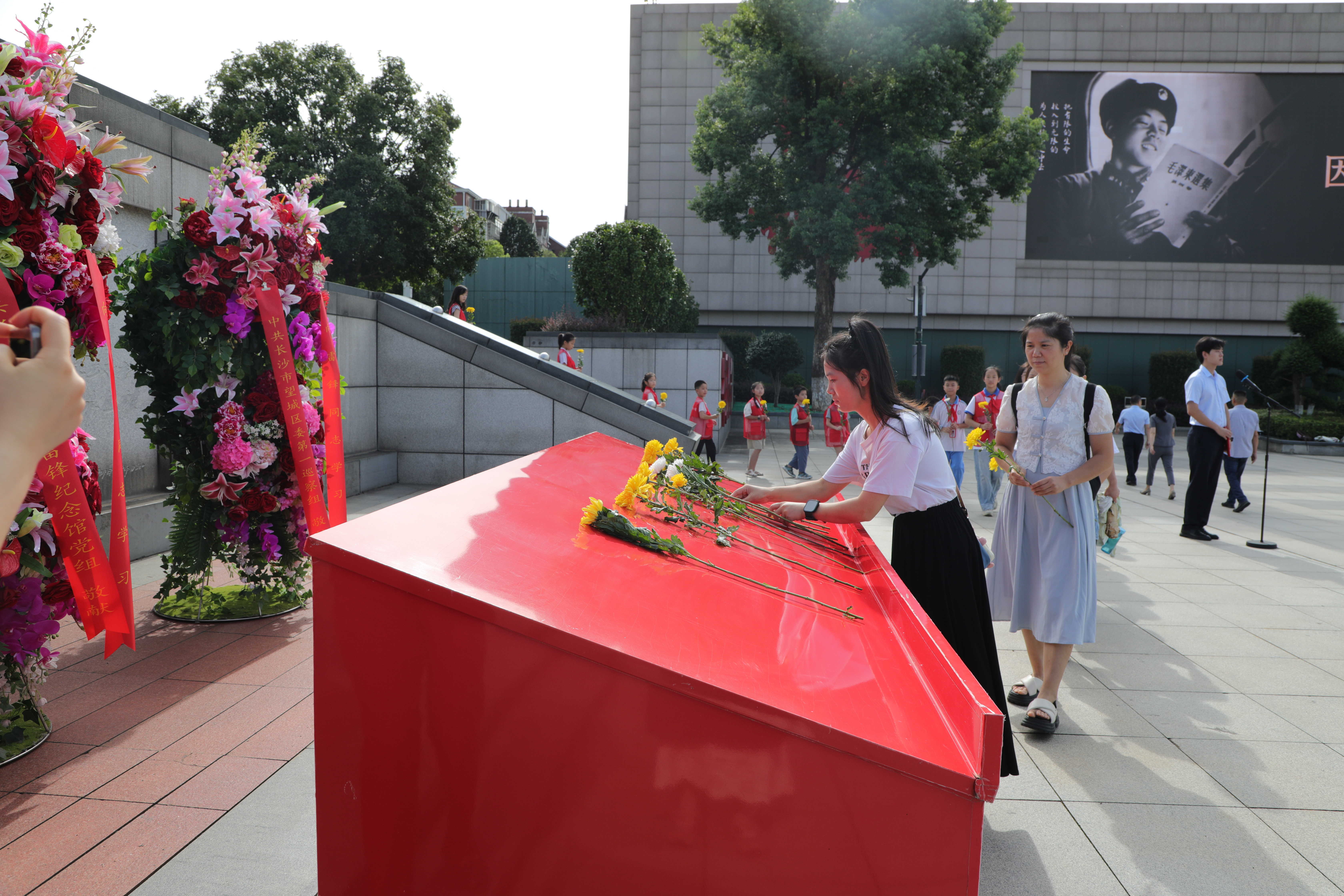 2025年8月15日上午9時,望城區委第一巡察組全體成員、雷鋒紀念館全體干部職工、武警望城中隊官兵代表、深業物業工作人員、志愿者代表、紅領巾講解員及觀眾代表等,在雷鋒塑像廣場舉行向雷鋒同志塑像敬獻花籃儀式。全體人員肅立,面向雷鋒塑像三鞠躬,并依次送上鮮花。