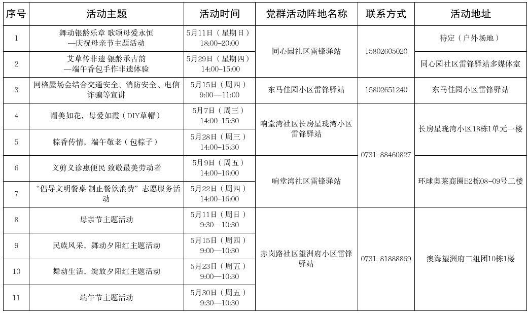 2025年5月白沙洲街道雷鋒驛站黨群活動計劃