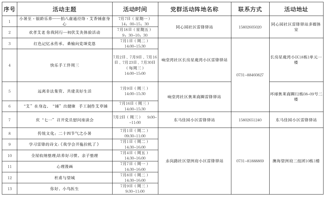 2025年7月白沙洲街道雷鋒驛站黨群活動計劃