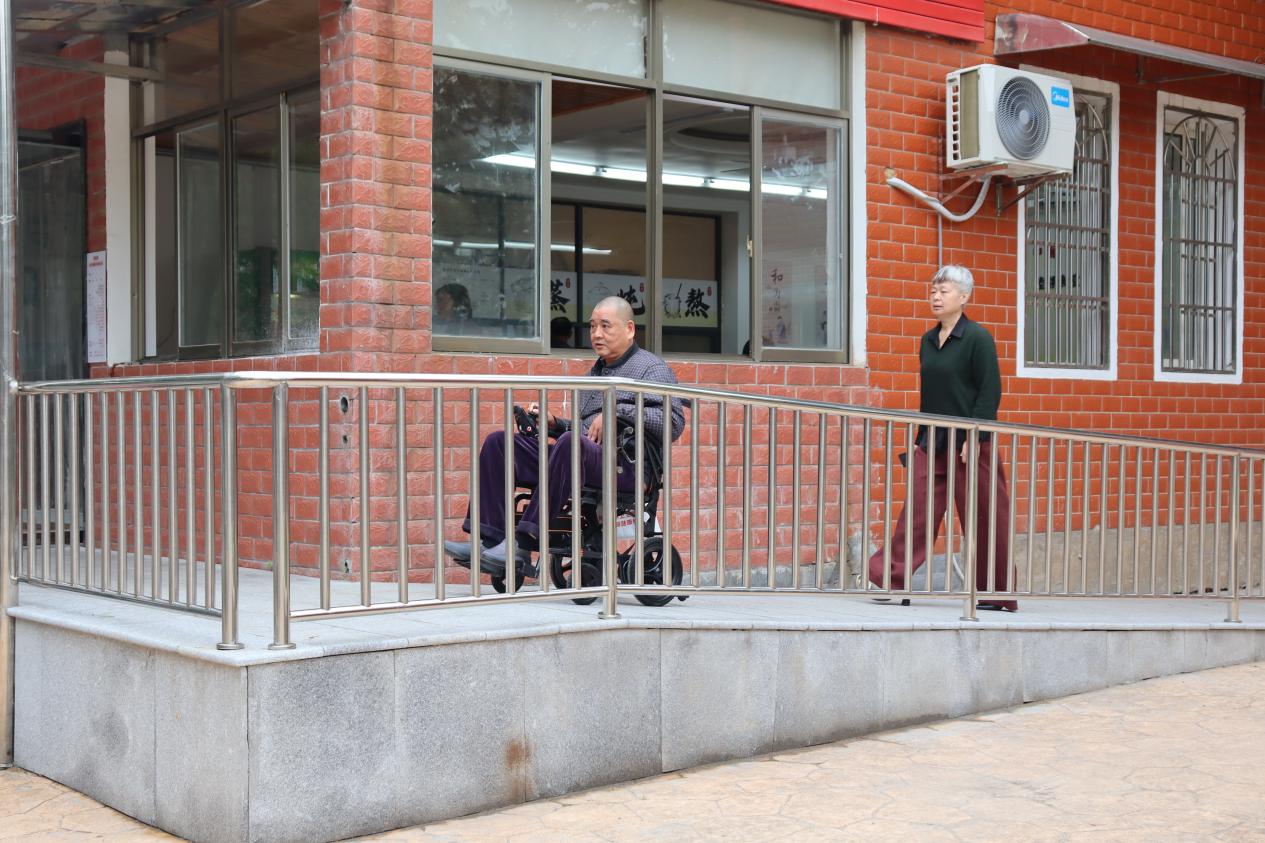 改造無障礙緩坡通道,便于殘障居民前往社區睦鄰食堂就餐。