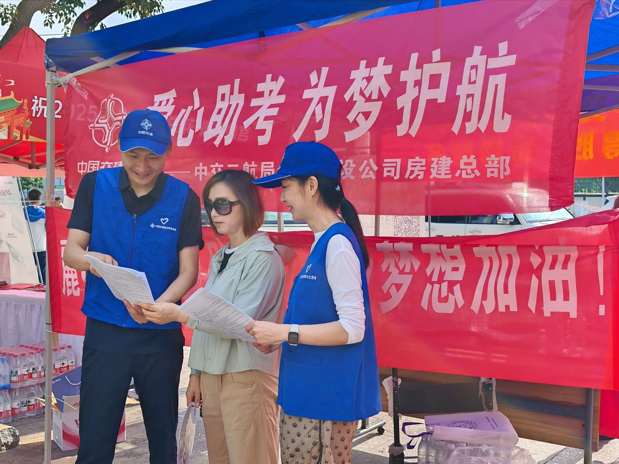 中交(長沙)建設有限公司工會組織志愿者開展志愿服務活動,為多個高考考點的考生和家長送去夏日清涼。愛心服務點內,志愿者們還精心準備了自制的《高考志愿填報須知》手冊,并安排專人現(xiàn)場解讀平行志愿規(guī)則、傳授專業(yè)選擇技巧,助力家長提前規(guī)劃,為孩子的未來之路點亮一盞明燈。