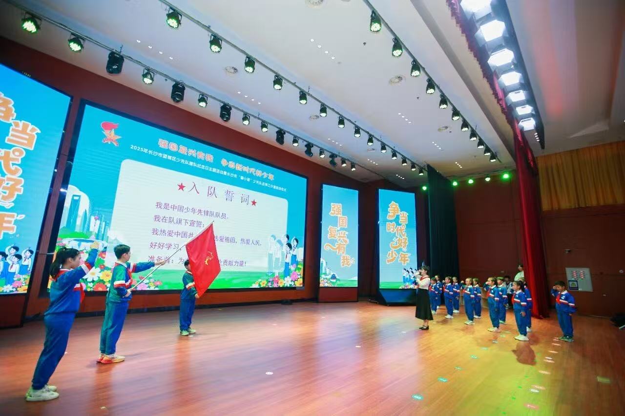 示范性入隊儀式上,一批新隊員光榮加入少先隊,他們接過象征責任與傳承的接力棒,以清脆而堅定的誓言表達決心,展現了新時代少先隊員的昂揚風貌。