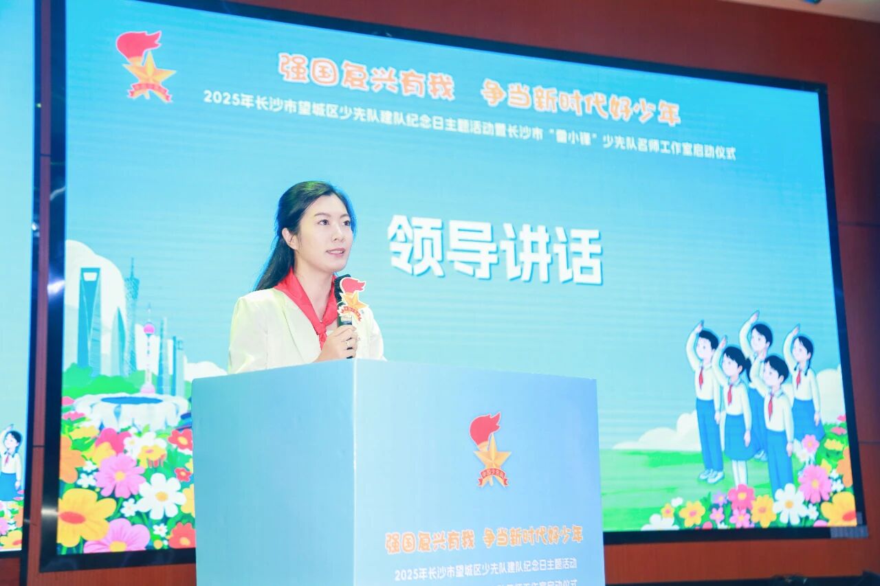 團長沙市委副書記李博涵指出:“少先隊員是祖國的未來、民族的希望,是實現中華民族偉大復興的先鋒力量。在今天這個特別的日子里,我們共同見證了新隊員的入隊儀式,重溫了鏗鏘的入隊誓詞,深切感受到了少先隊組織的莊嚴與光榮”。同時,她提出三點希望:以“名師工作室”為引擎,打造育人“新高地”;以“專業化成長”為目標,當好引路“排頭兵”;以“追‘鋒’少年”為標桿,爭做復興“預備隊”