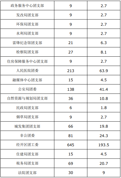附件:2024年第三季度各單位團組織團費上繳任務分配表