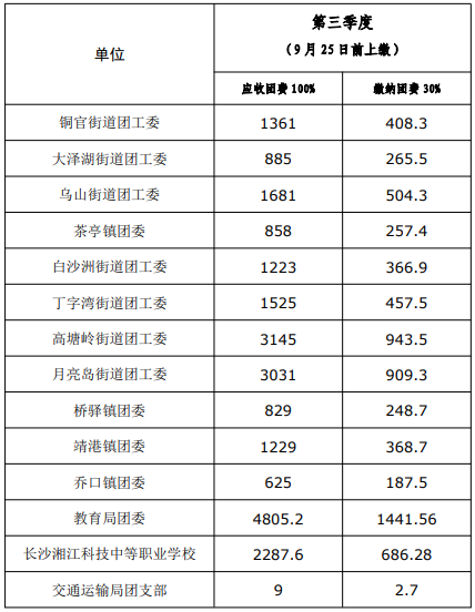 請各單位按照第三季度任務數于9月25日前通過和包支付將2024年第三季度團費上交至團區委。