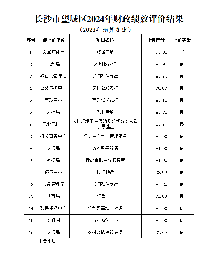 長沙市望城區(qū)2024年財政績效評價結(jié)果