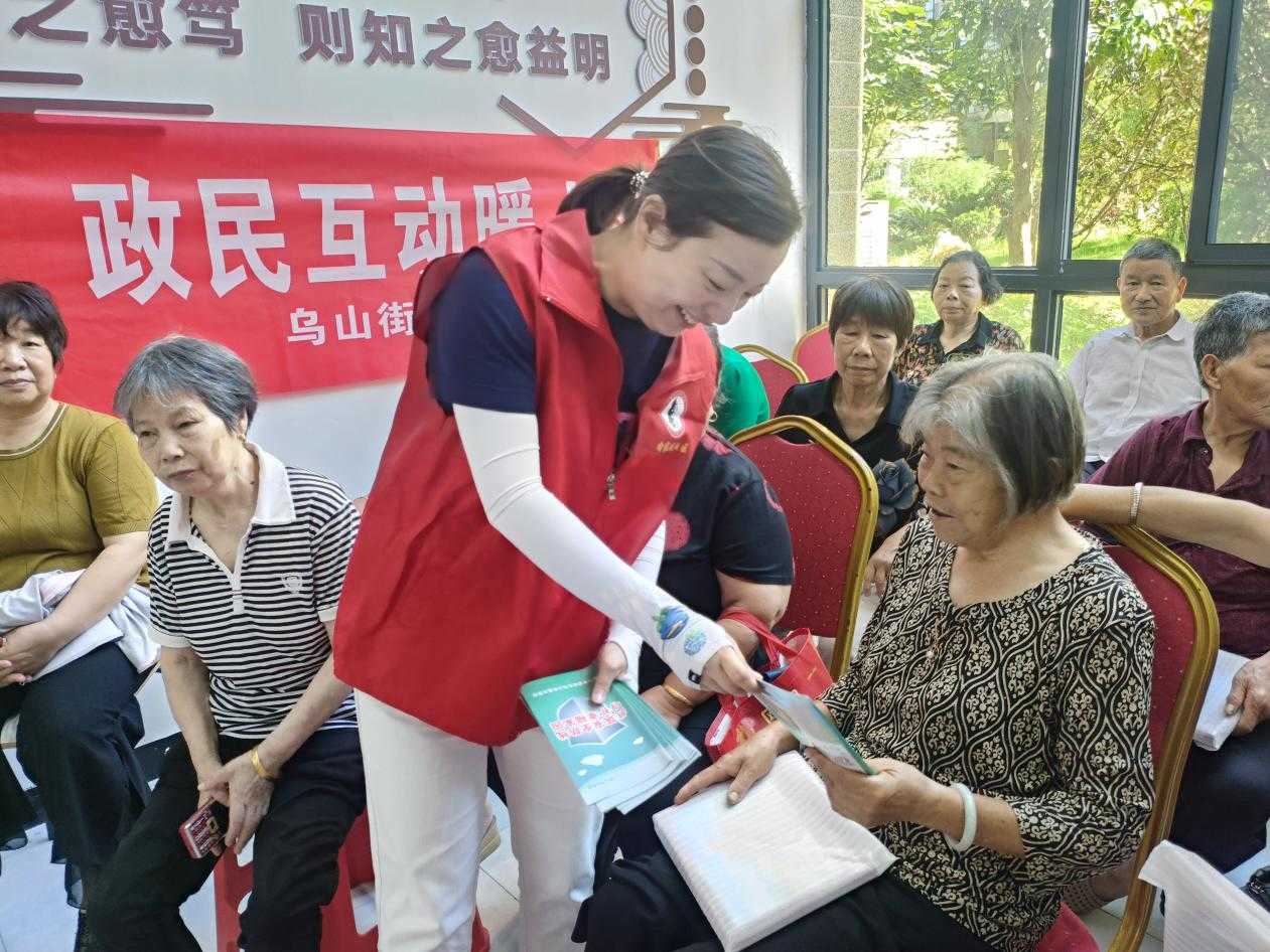 (社區志愿者向居民開展養老保險、醫療救助、惠民幫扶、法律援助等各項政策的宣傳講解。)